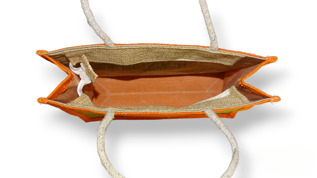 A Simple & Classy looking bag with inside lamination and also it is eco-friendly because it is made of 100% Pure Jute which has a lots of benefits in itself like it is highly durable because of the incredibly strong jute fibres which makes it capable of carrying heavy loads, it can be used to carry books, groceries and can be used for many other purposes too. It has zipper on the top to keep yor essentials safe. Jute bags are reusable and long lasting, Jute bags can last upto 4 years and they are fully biodegradable and recyclable.