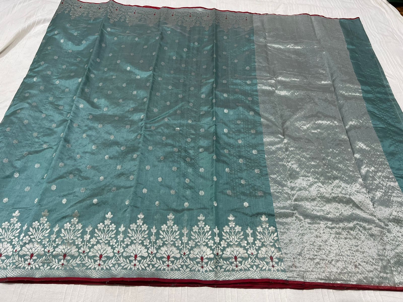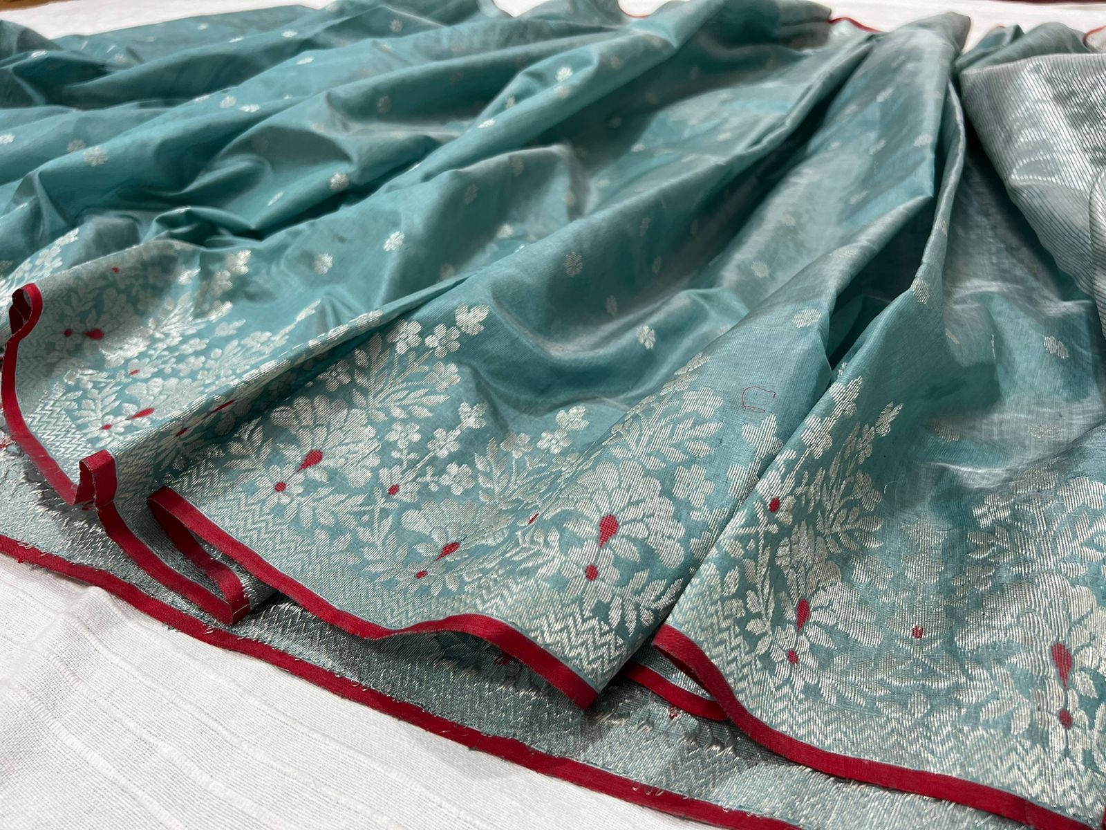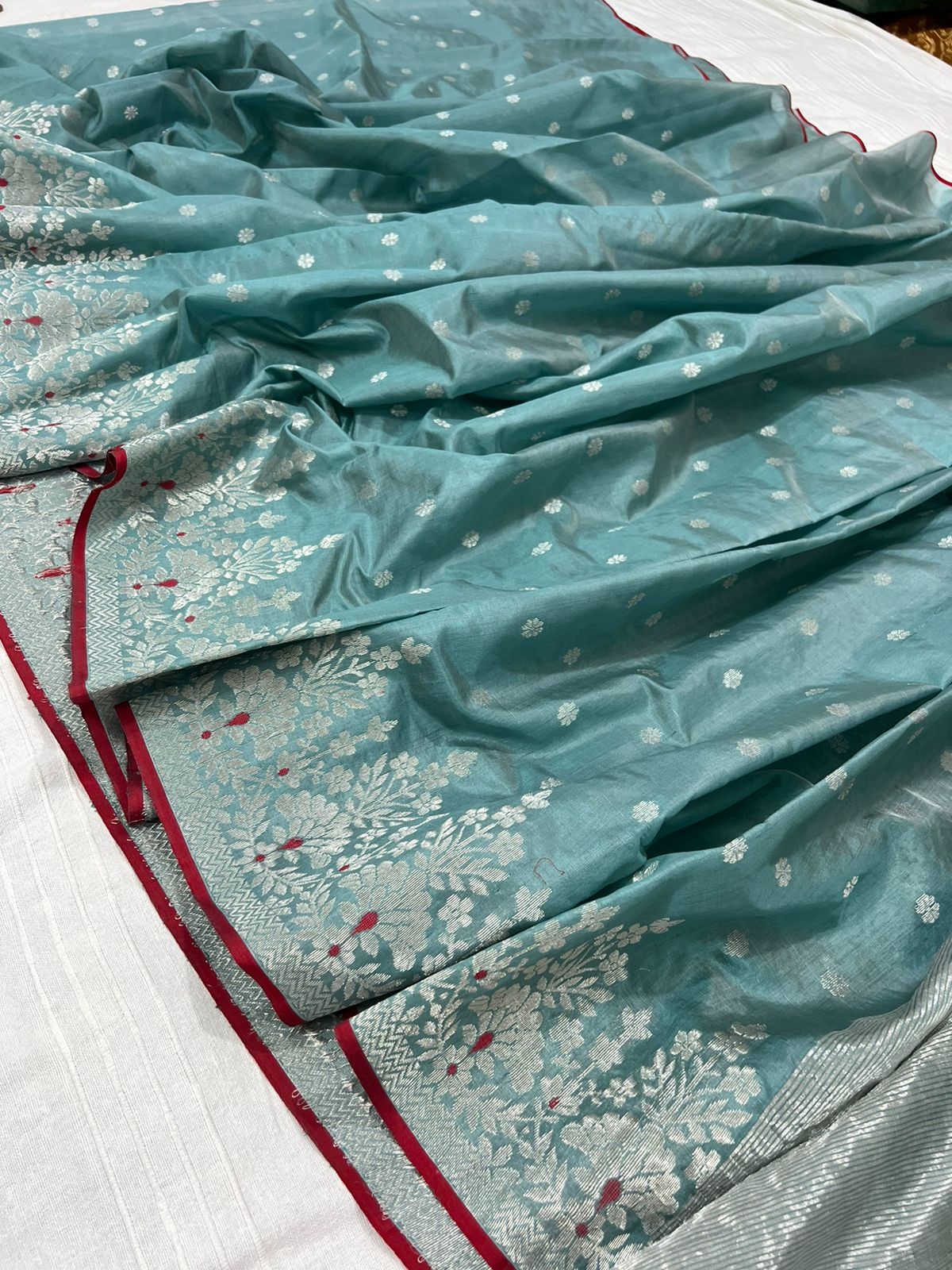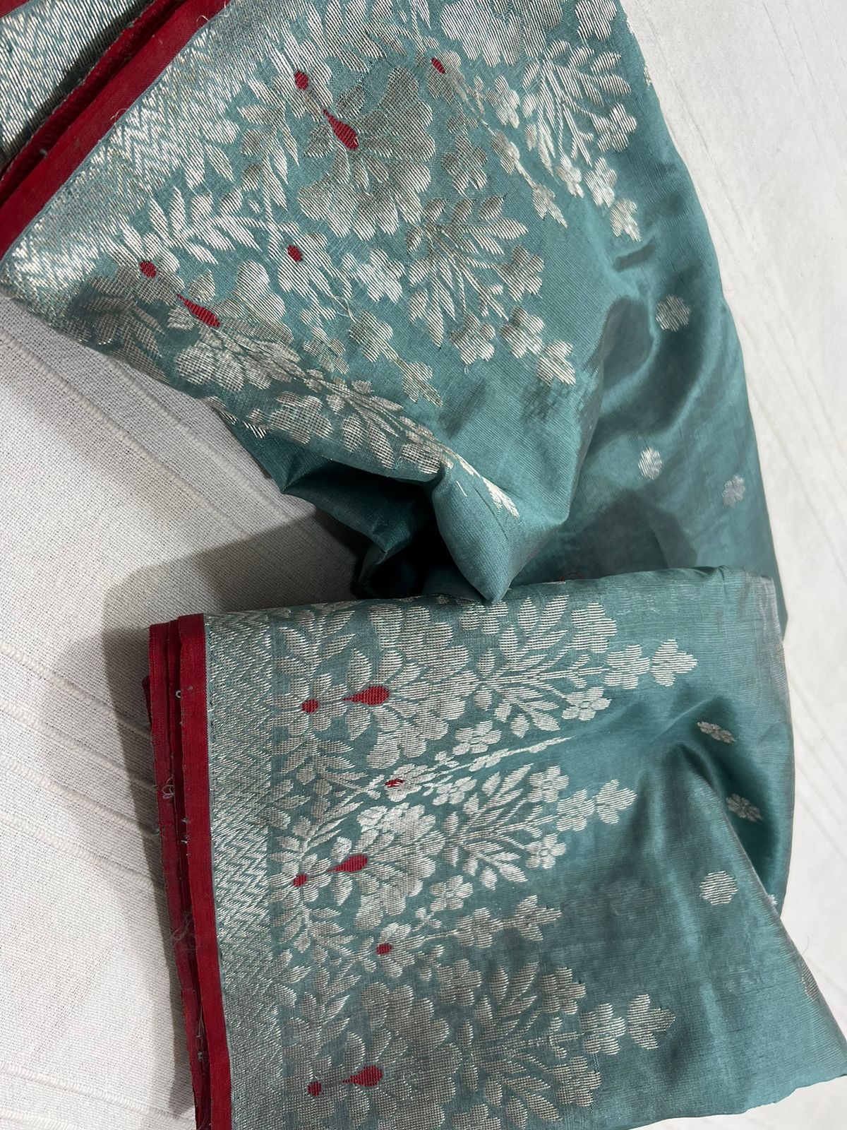 chanderi handloom pattu silk silver jari wark ghani buti mina hand border saree available