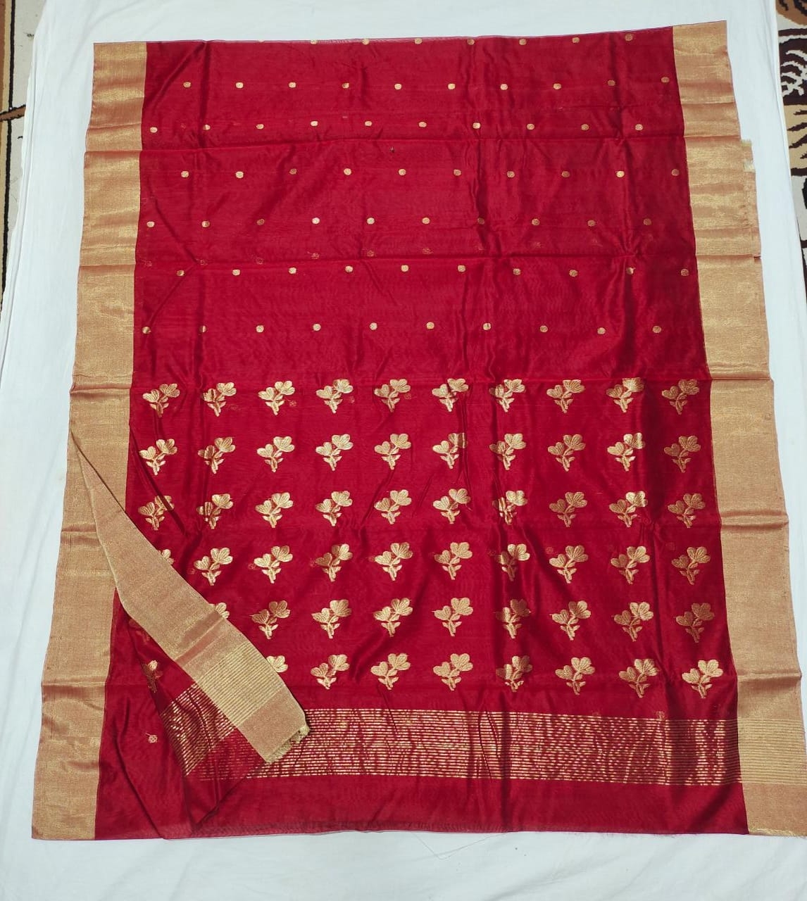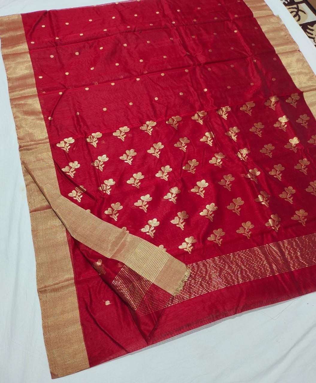 Chanderi handloom hand weaving sholdar pallu gold jari work saree new stock available.