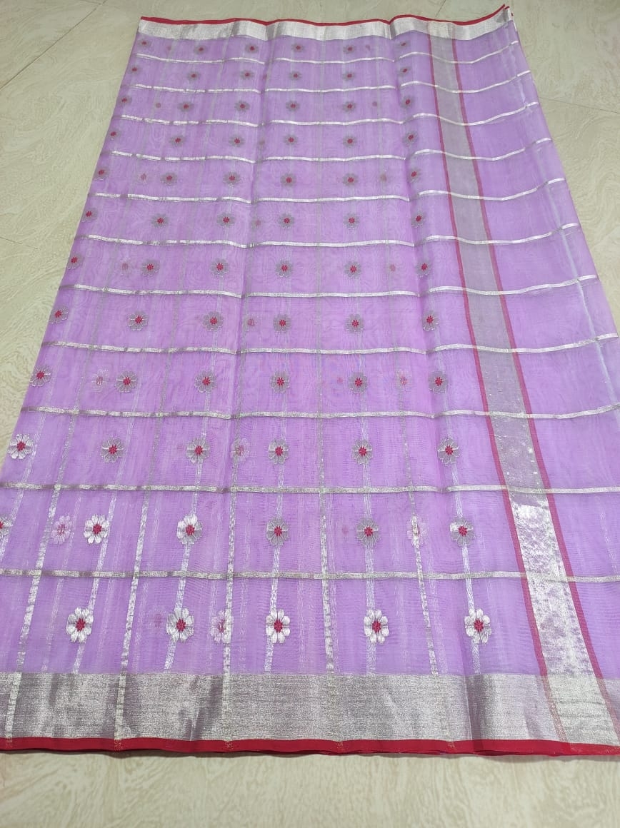 chanderi handloom katan silk silver jari mina buti wark chek design saree new stock available