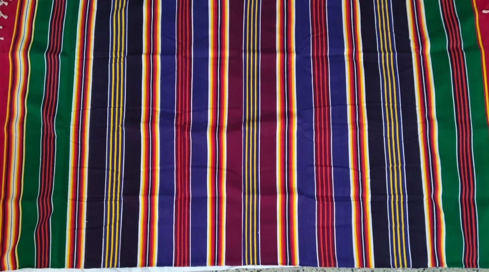 it is plain thick durries manufactured in salem district of Tamilnadu. It is woven with coarser cotton yarns enabling weavers to weave different kind of designs which are mostly limited to stripes (coarser) in horizontal direction developed with the use of different colored weft yarns.