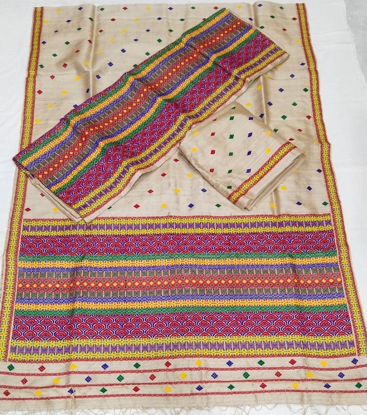 Assamese Mekhela Chaddar made of 100% Tassar Silk yarn on handloom. It is a assamese ethinic wear used for party and wedding .