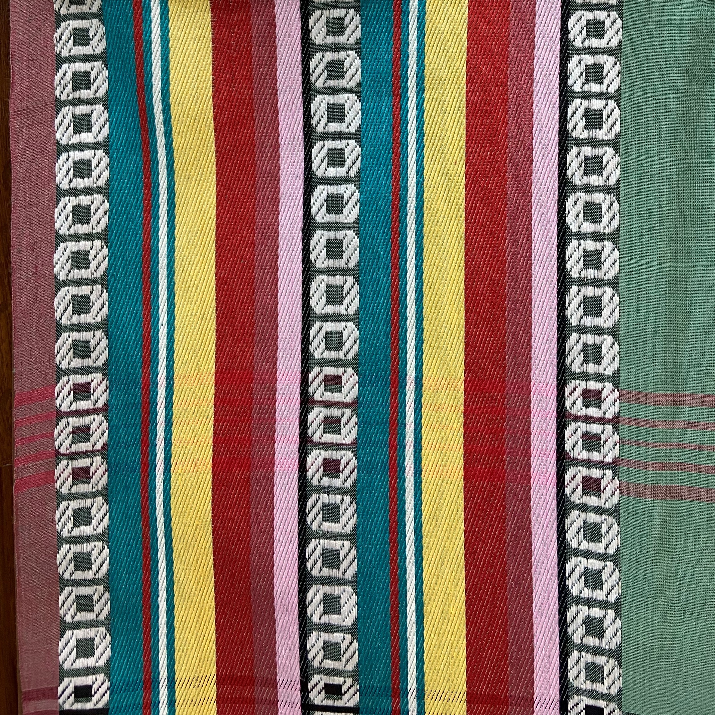 Traditional Santipuri saree, made with 100% fine cotton yarn. Traditional Shantipur Saree borders, or paars as they are called, have picturesque names like bhomra, bumble bee, tabij, amulet, rajmahal, royal palace, ardha-chandra etc. Famous for their fine and uniform texture. The counts of cotton yarn range from 80s to 100s. The designs used in extra warp of side border give the verities their names. It is suitable for casual as well as special occasions.