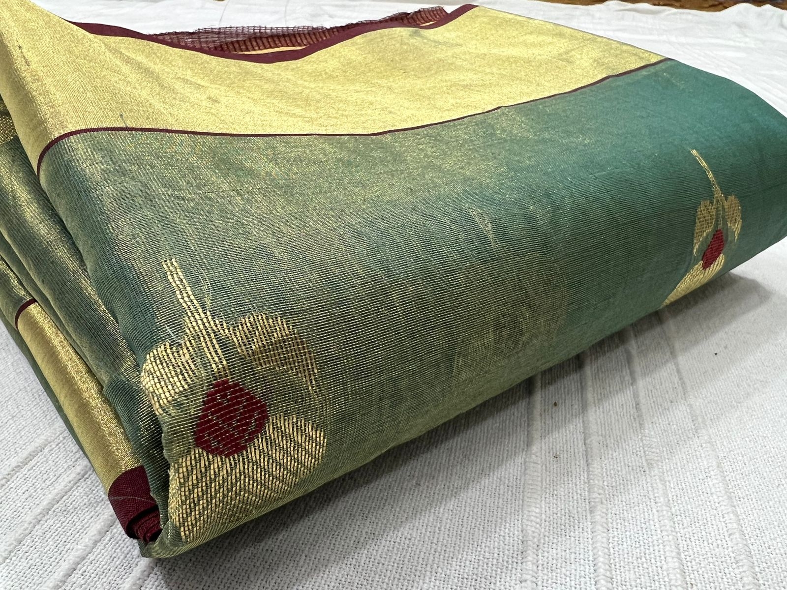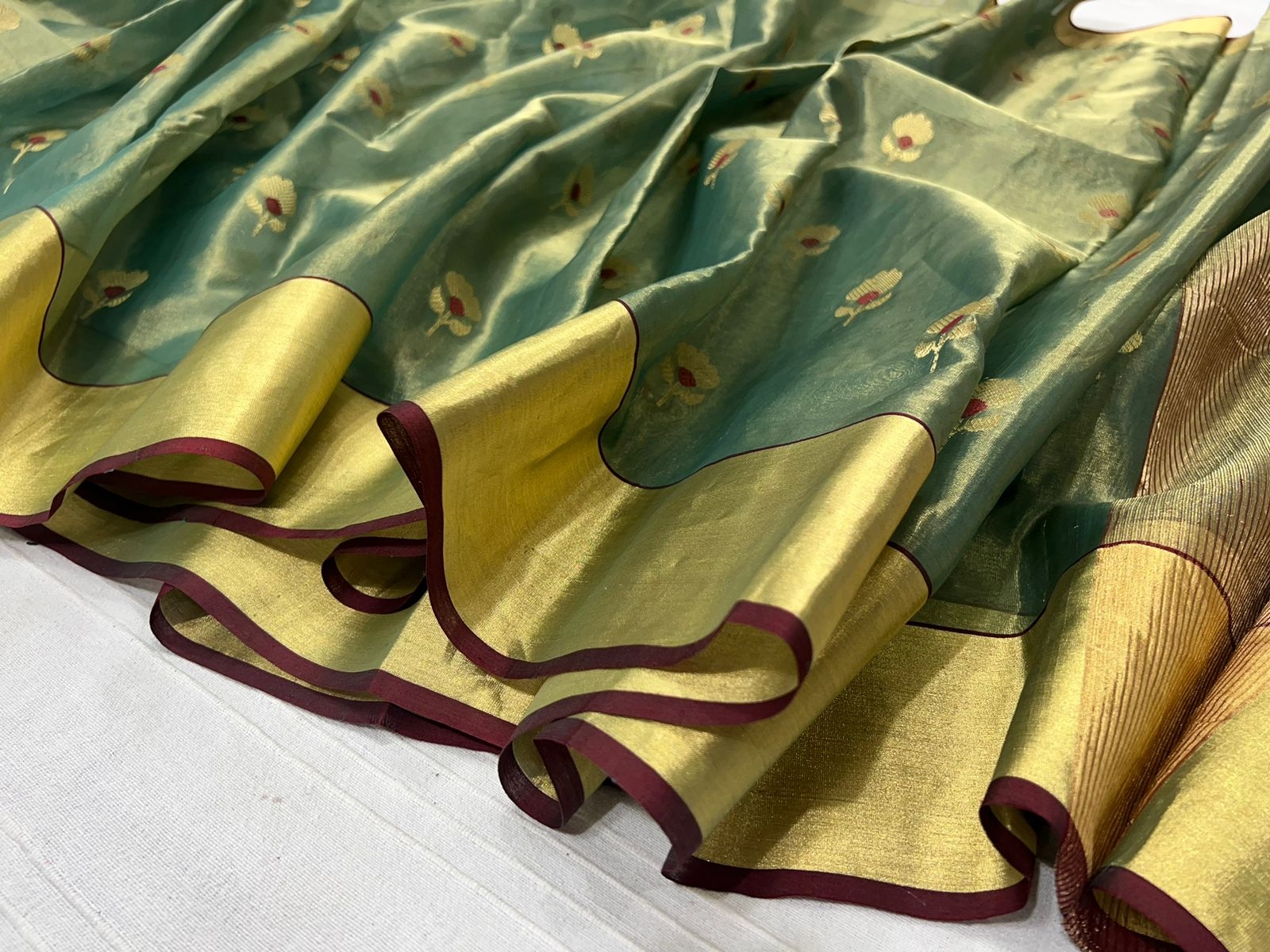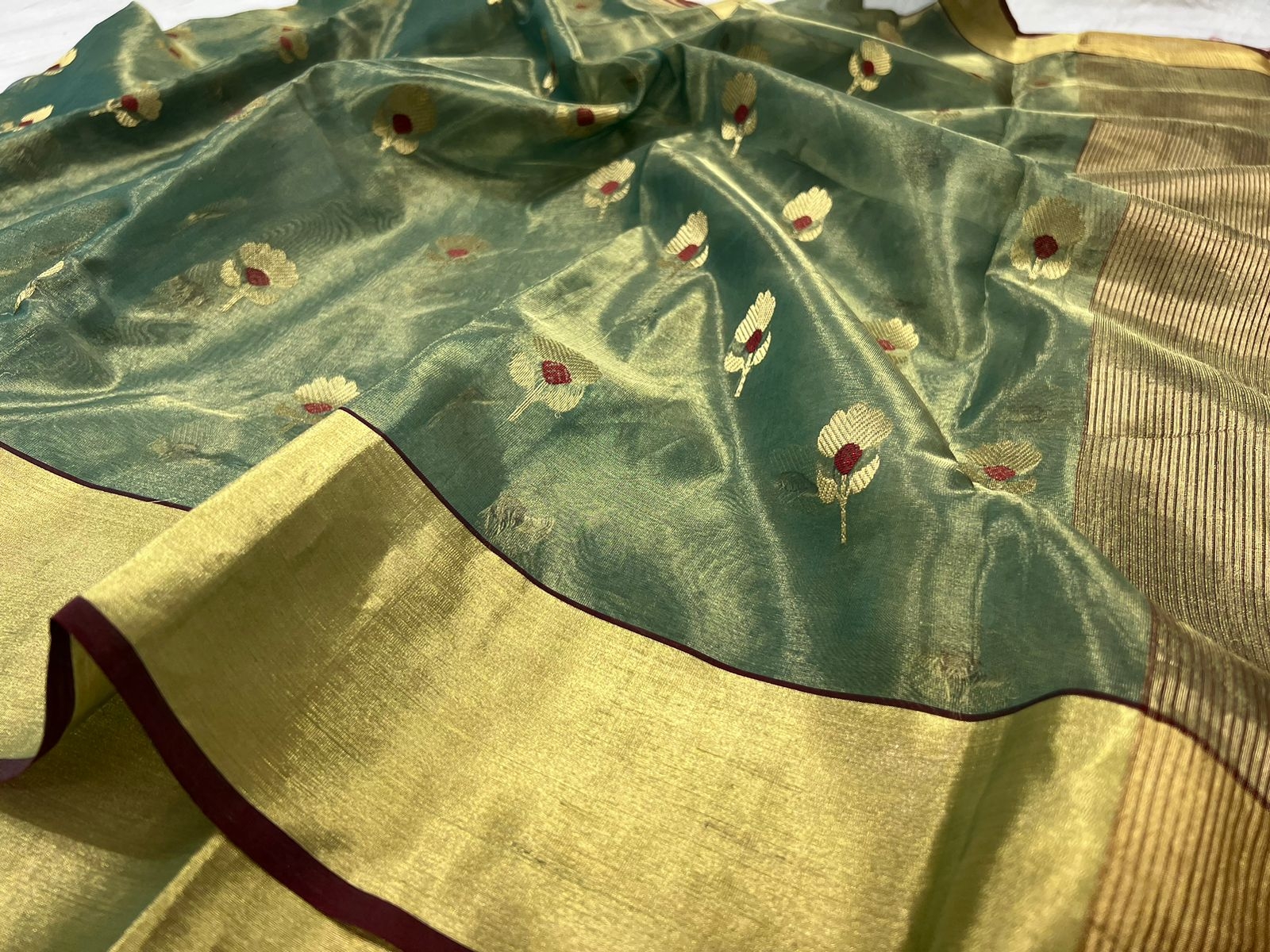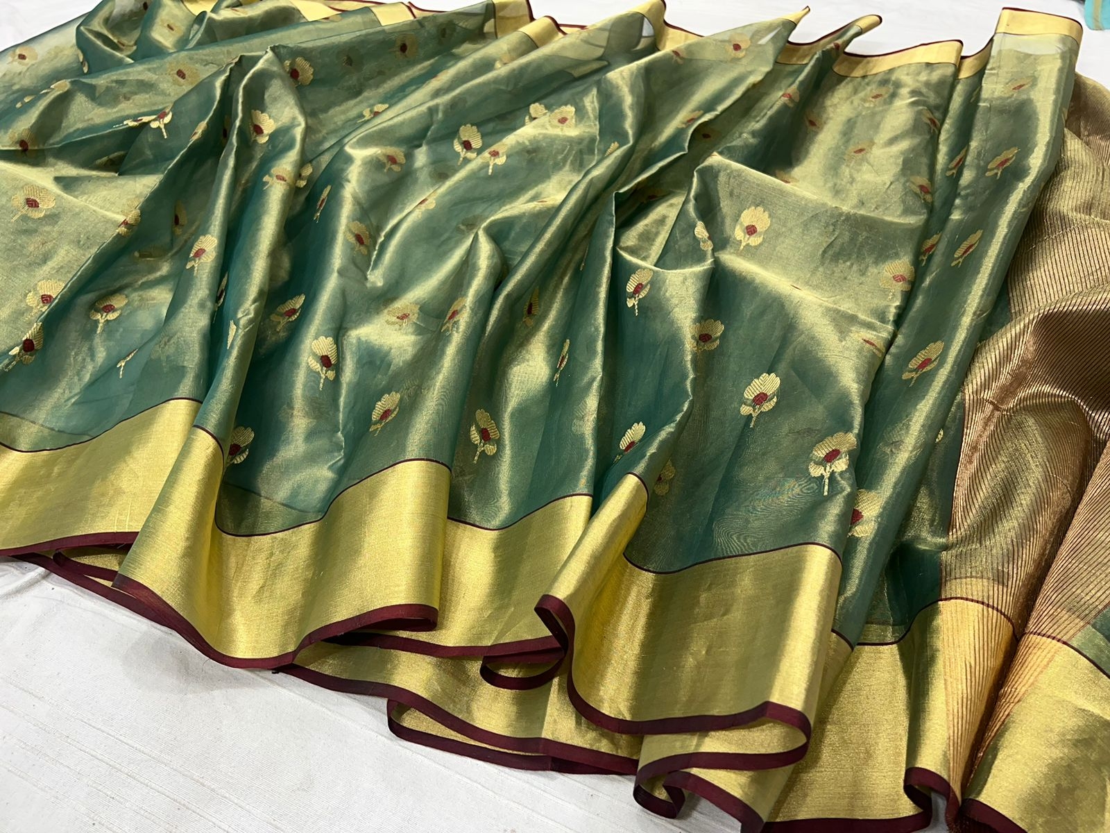 chanderi handloom gold tishu katan silk all over mina buti new design saree available