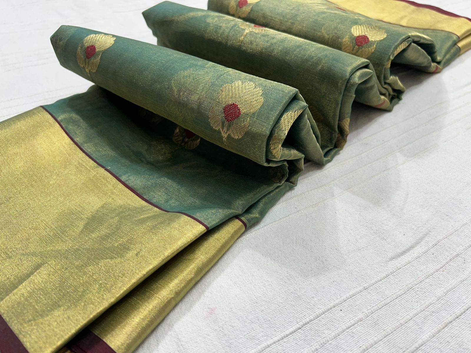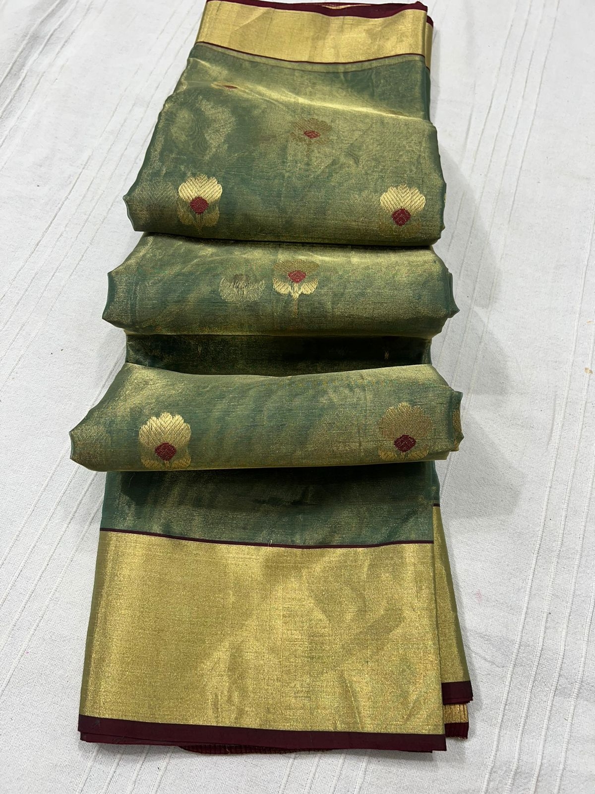 chanderibhandloom gild jari tishu katan silk all over mina buti new deign saree available