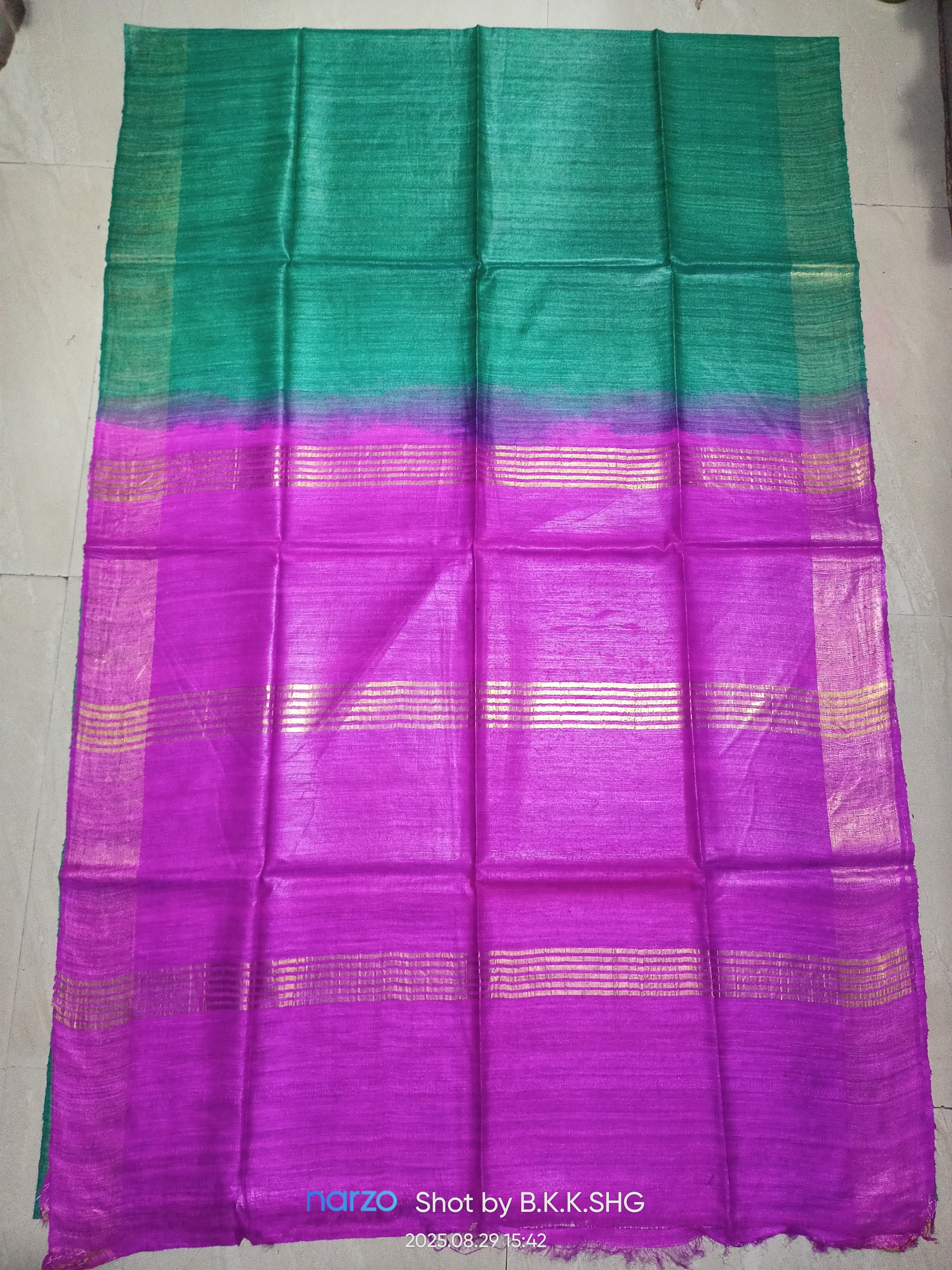 Tasar by ghicha 2D deying pure silk jari border saree, 64 Reed 45 inch 6.30 c.m length