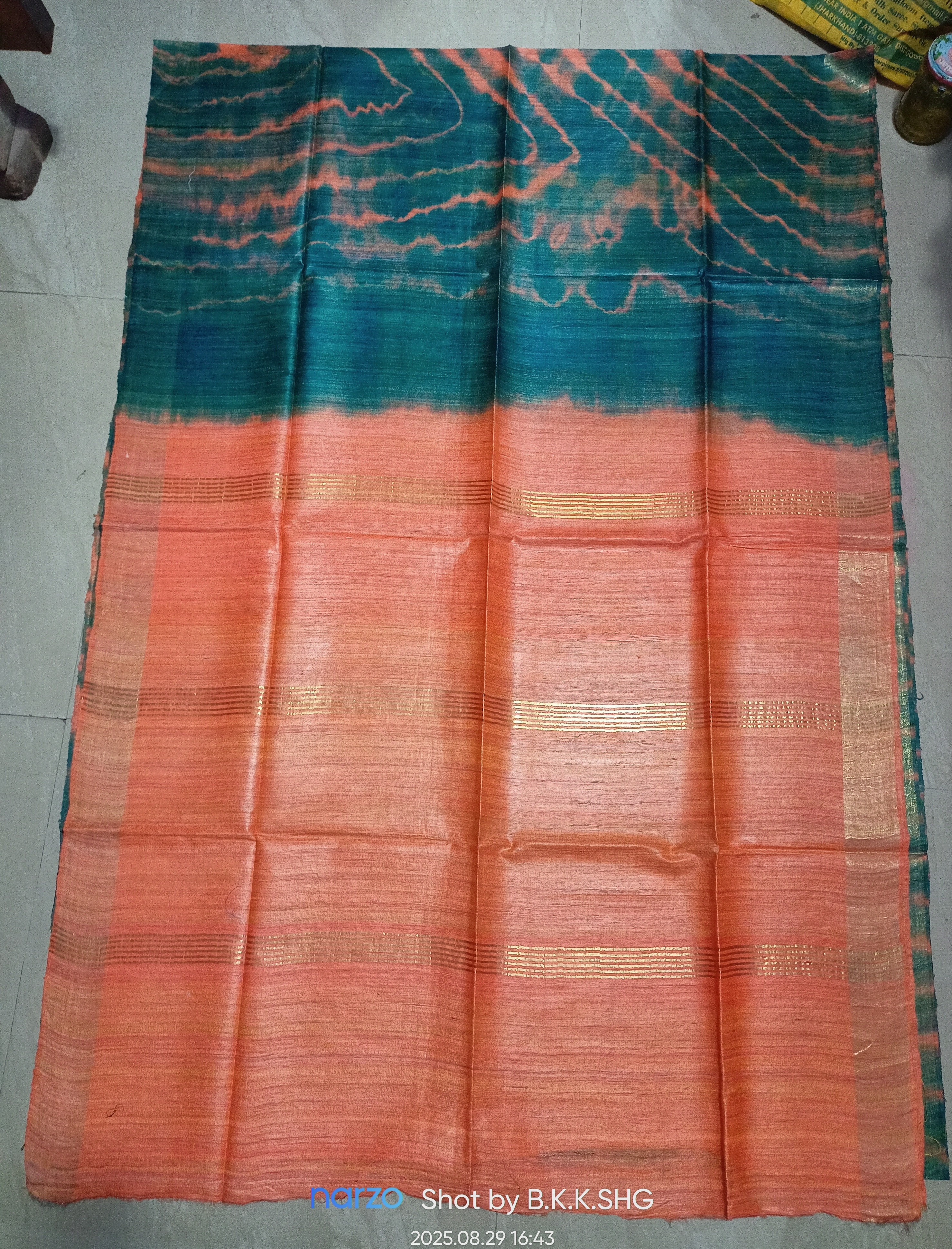 Tasar by Ghicha jari border shibori deying handloom waeving pure silk saree