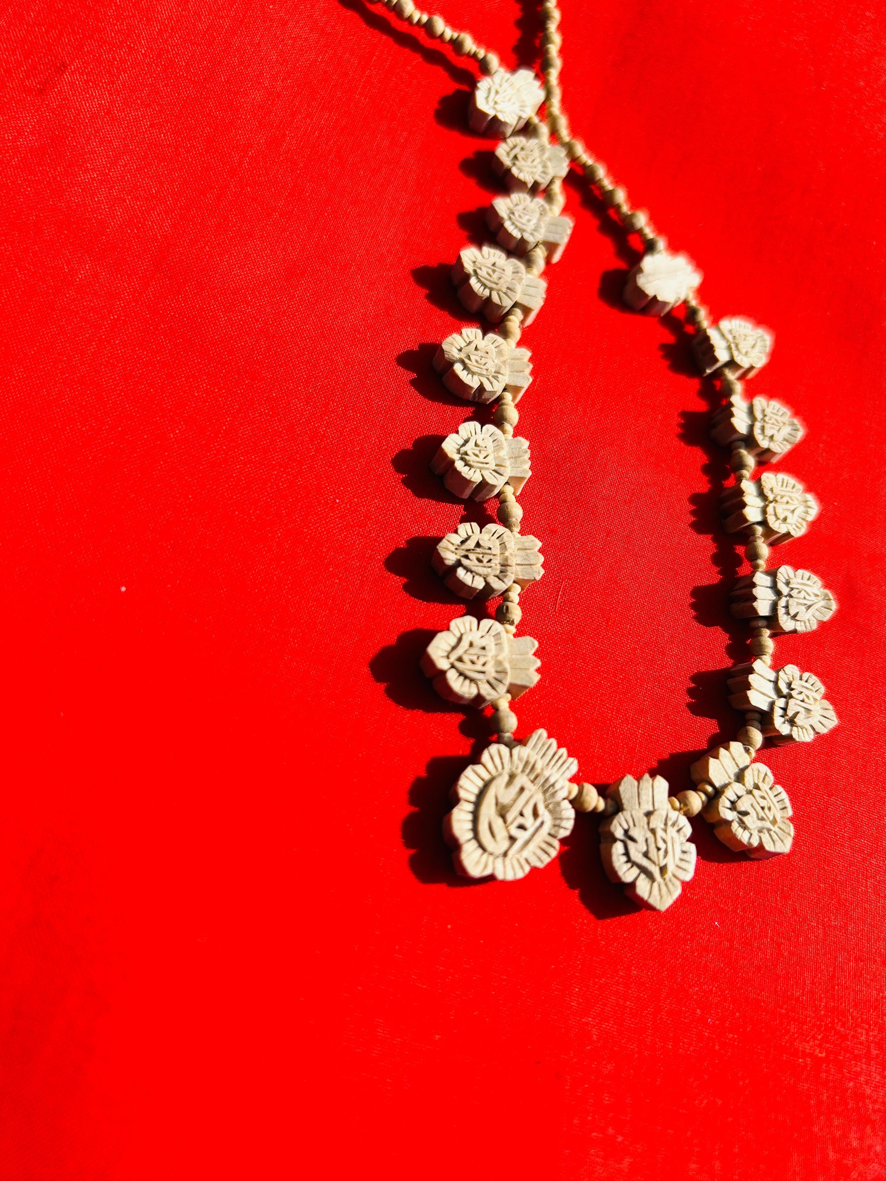 It is Single round neck Kanthi Mala, 100% made from stem and root in Tulsi wood. Tulsi wood does produce by farming in Jait village mathura. Jait village is origin of Tulsi production and Tulsi Kanthi is being made since more than 100 years in village.