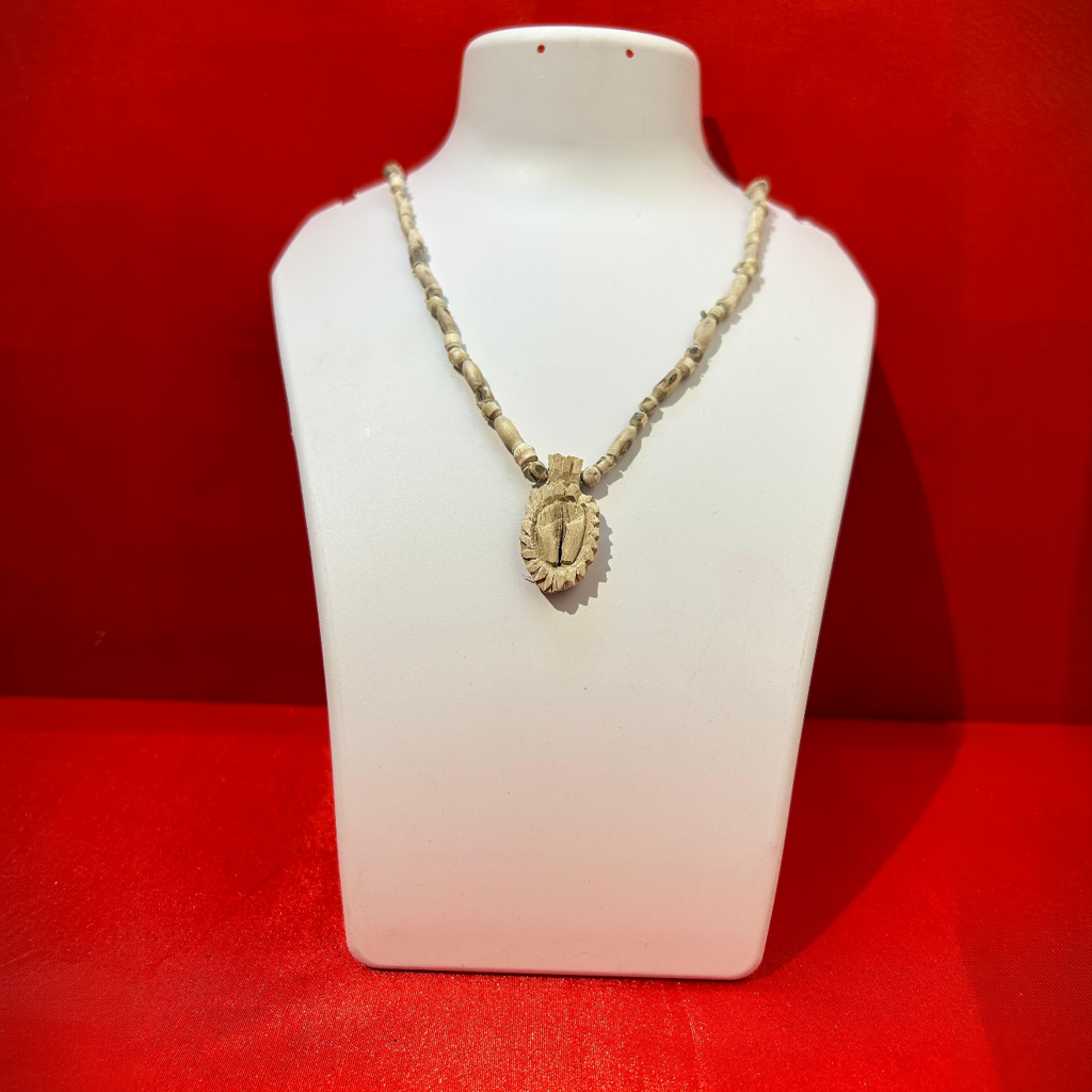 What makes this Handcrafted Tulsi Kanthi Mala so unique is its origin and raw material. It is a single-round neck Kanthi Mala, meticulously handmade from the stem and root of the Tulsi wood. No machine or mass production technique is involved. Each bead may vary slightly in size and form, a testimony to the handcrafted nature of the product and a subtle reminder of the artisan’s personal touch.