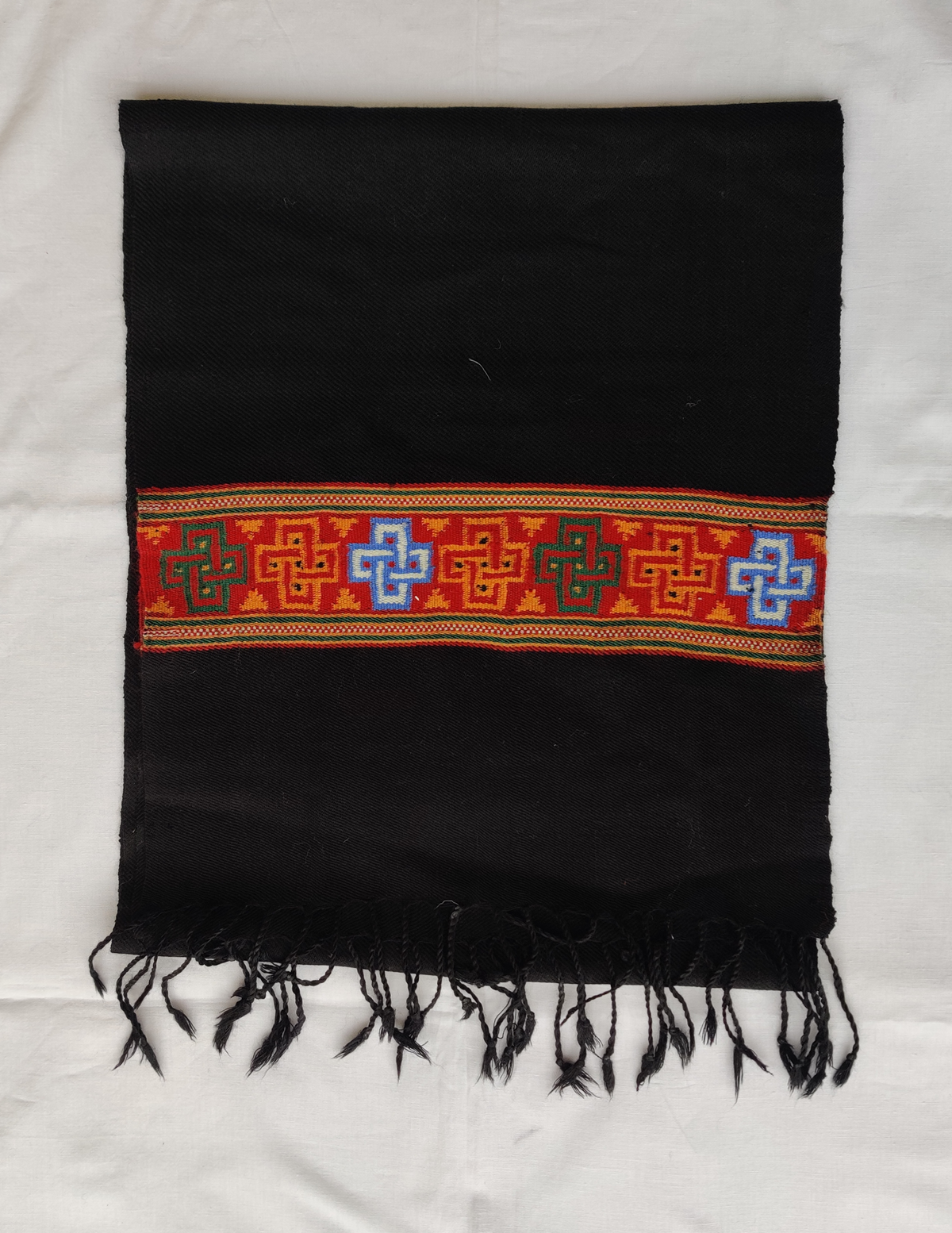 Black Multicolor Handwoven Merino Wool Traditional Kinnauri Stole