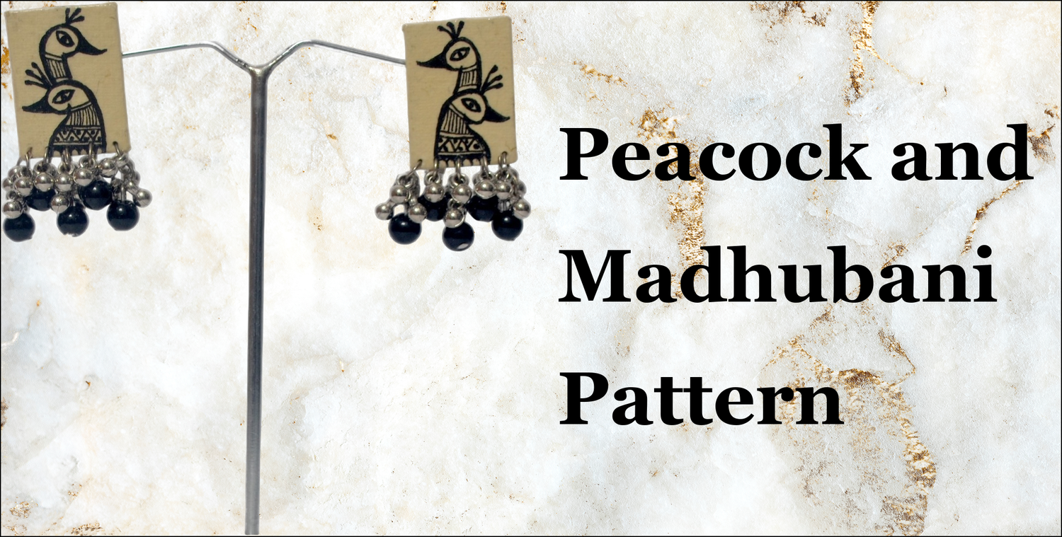 - Handmade paper earrings with intricate Peacock and Madhubani pattern design.