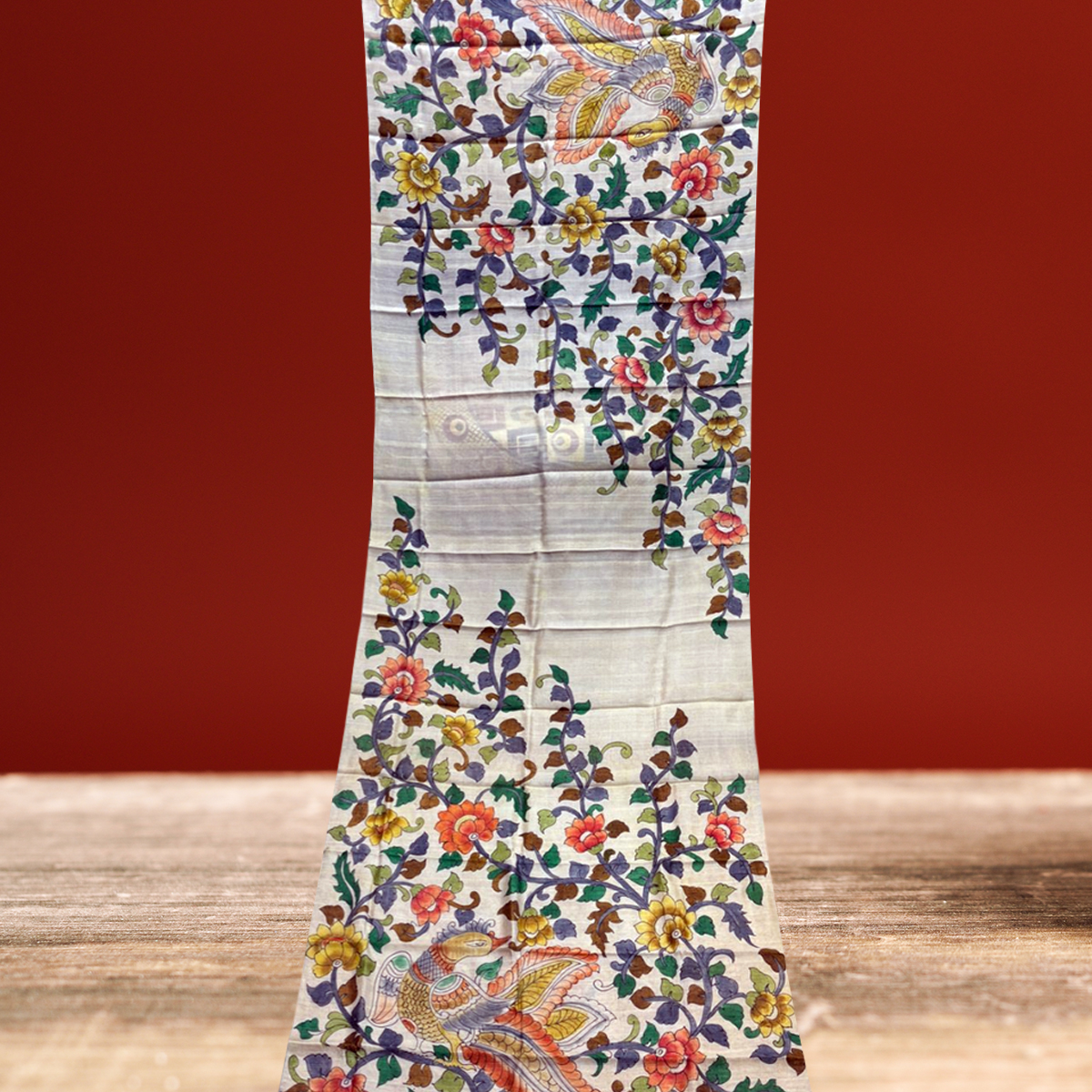 Hand-Painted Pure Tussar Silk Dupatta with Zari Border