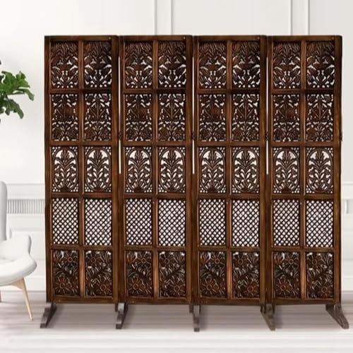 This Handcrafted Wooden Partition Screen seamlessly combines utility and elegance. Its sturdy construction, intricate detailing and adaptability make it a must-have for enhancing interiors with style and purpose.