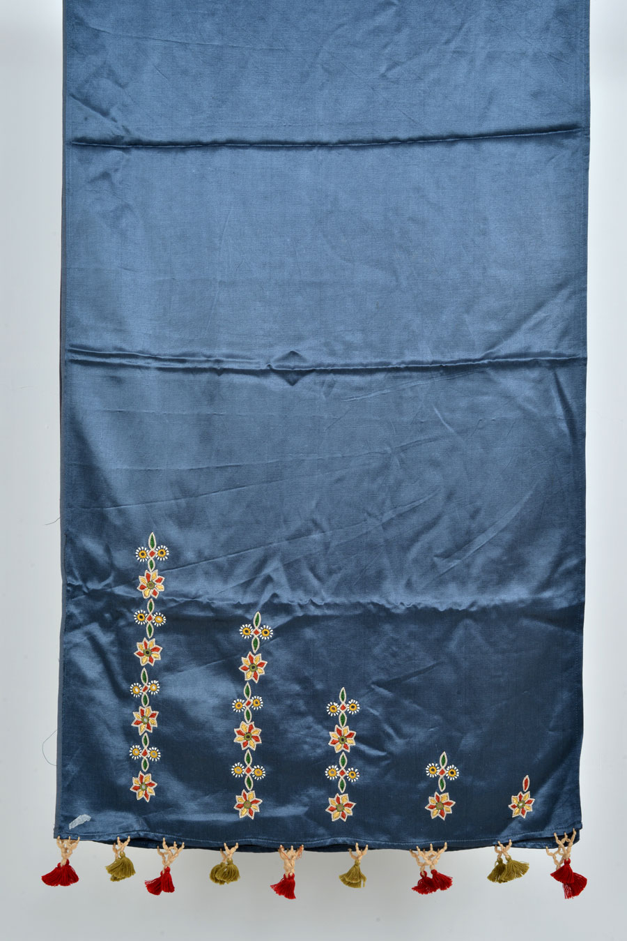 The Ahir Work Mashru Stole is a testament to Gujarat’s rich textile heritage. Crafted from luxurious Mashru silk, this stole showcases the vibrant Ahir embroidery, a traditional craft known for its intricate patterns and colourful motifs. With a striking blue base, it effortlessly blends tradition with contemporary elegance, making it a unique addition to any wardrobe.