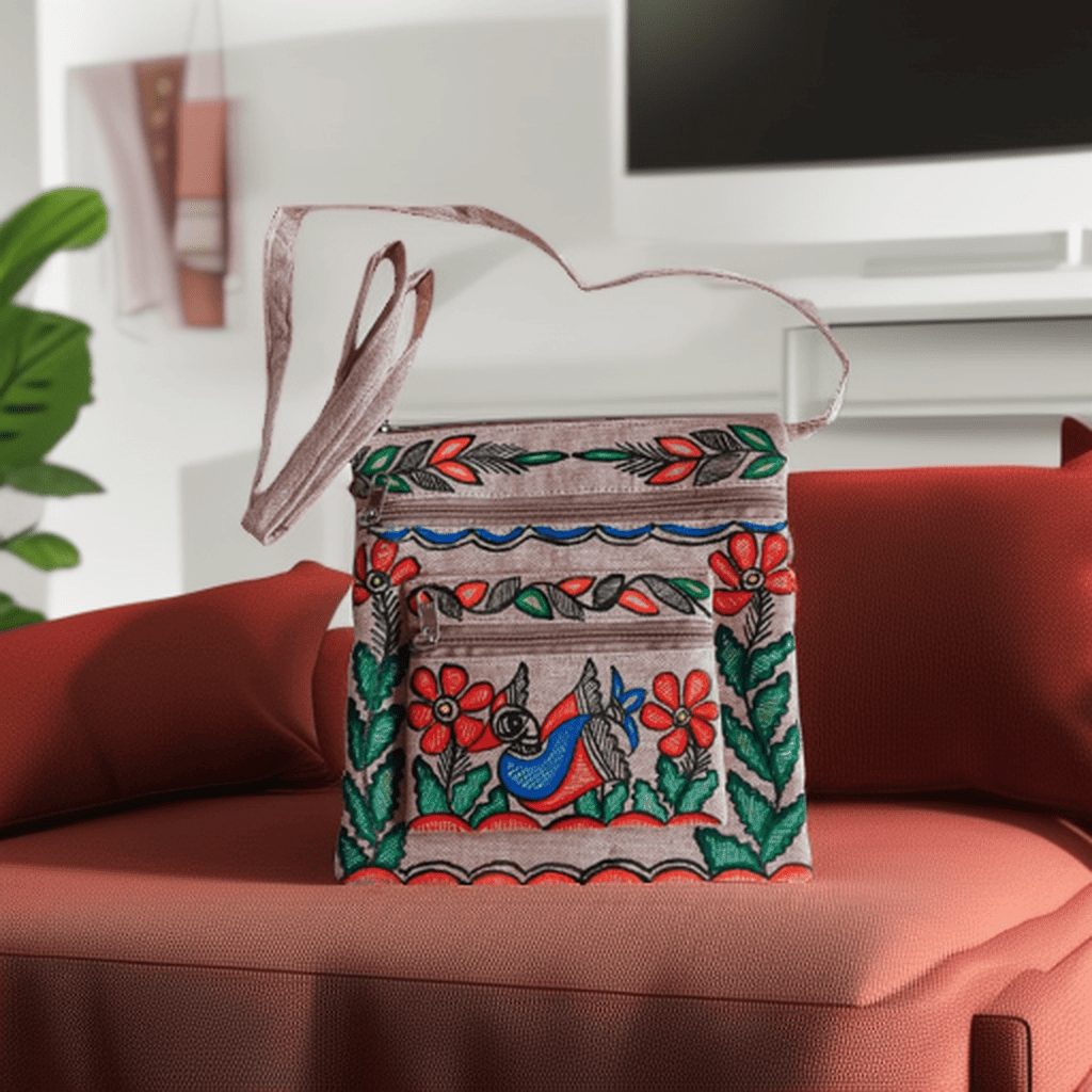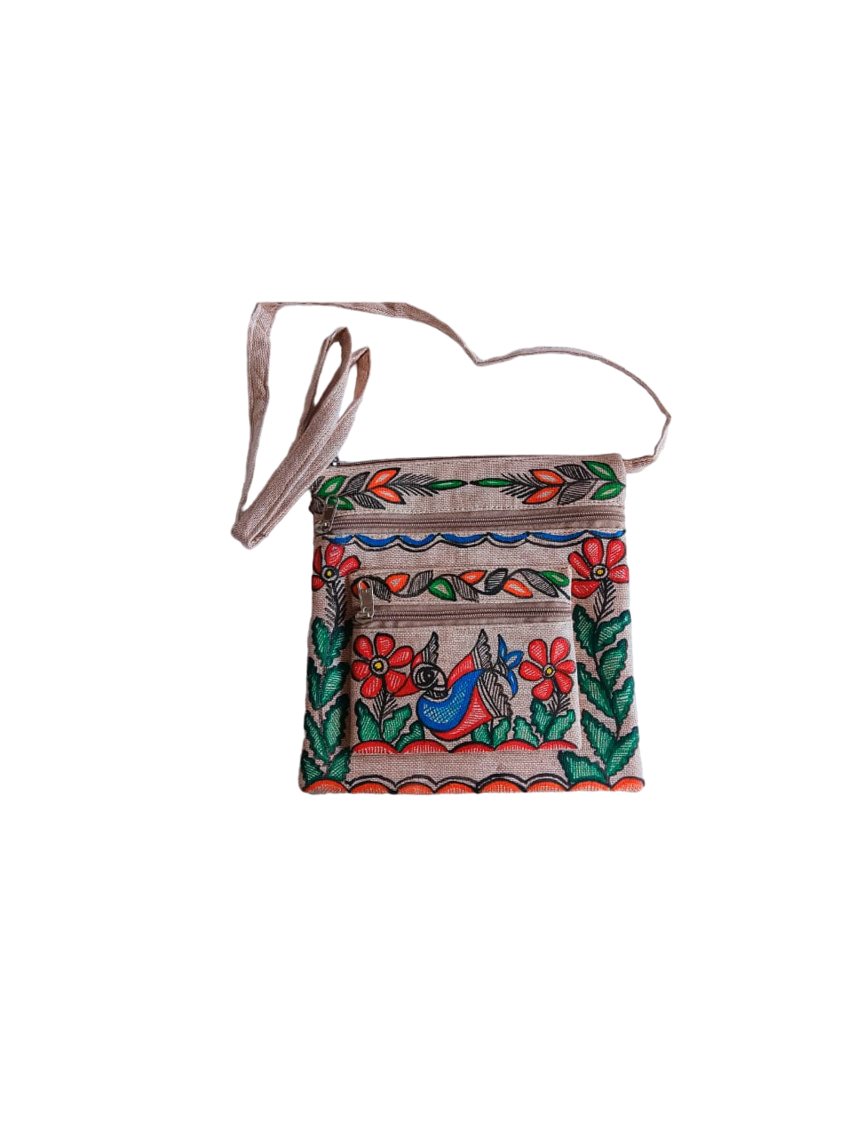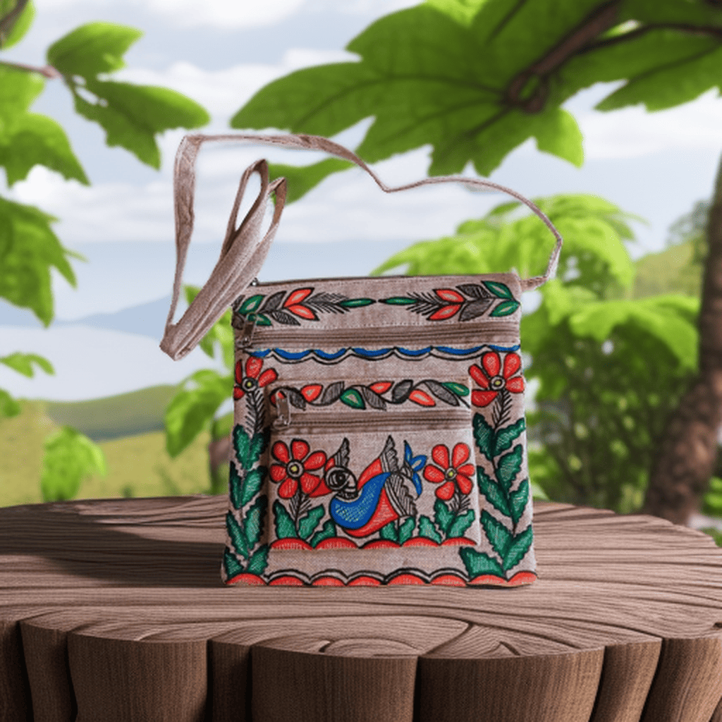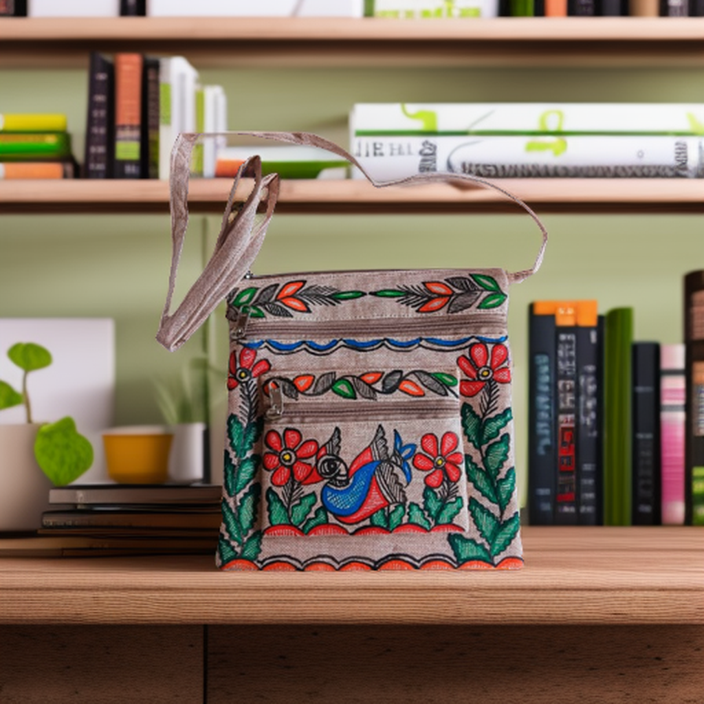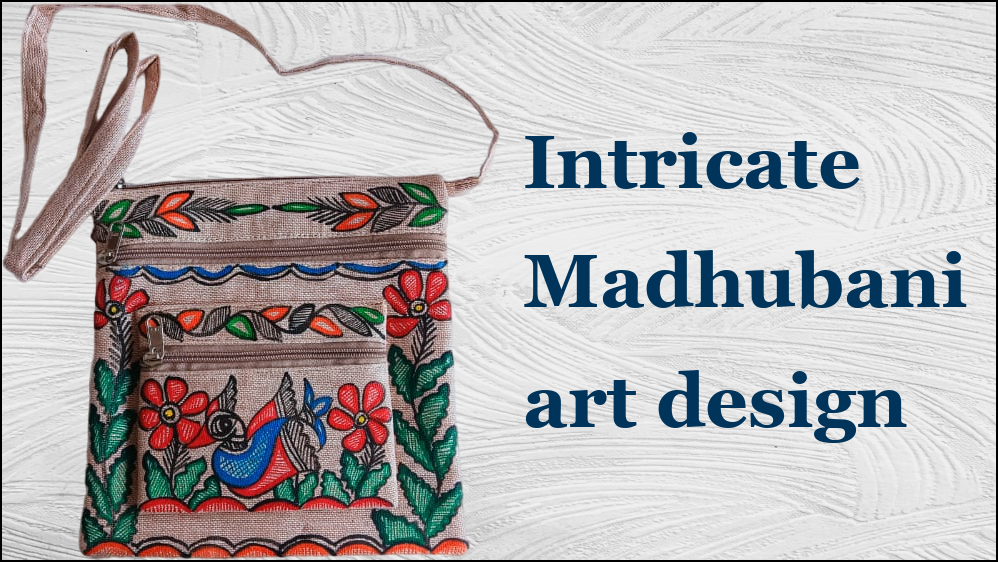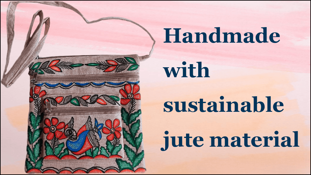 This bag stands out for its traditional craftsmanship, featuring detailed Madhubani art that reflects Bihar's rich cultural heritage. Beyond its aesthetic appeal, the bag is a testament to eco-friendly practices, crafted from sustainable jute and supporting local artisans. Its unique designs make it not just a functional item but a wearable piece of art.