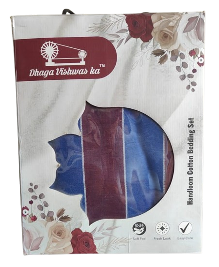 This blue and red striped pattern adds a striking yet subtle vibrancy to your bedroom decor. The fabric is soft, lightweight, and durable, making it perfect for everyday use. Handwoven with care, this bedsheet is a reflection of India’s rich heritage in handloom weaving, giving your home an artisanal touch.