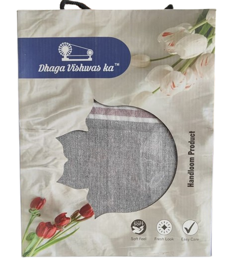 The grey handloom stole features clean white stripes that add a touch of modernity to the classic design, perfect for any occasion. Whether you're dressing up for a semi-formal event or adding an extra layer of warmth to a casual outfit, this stole works seamlessly with various styles. The handwoven craftsmanship provides a durable finish, while the breathable cotton fabric keeps you comfortable in all seasons.