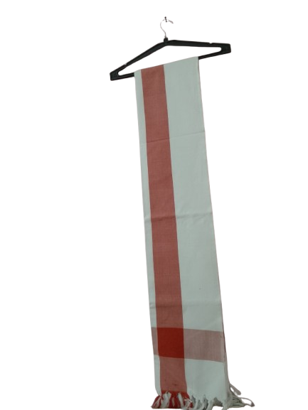 This handloom stole stands out due to its rich texture and the intricate weaving technique used by skilled artisans. The contrasting white and maroon hues make it versatile enough to pair with casual or formal wear. Made from 100% cotton, it is not only light and breathable but also durable, ensuring that the stole will be a lasting addition to your wardrobe.