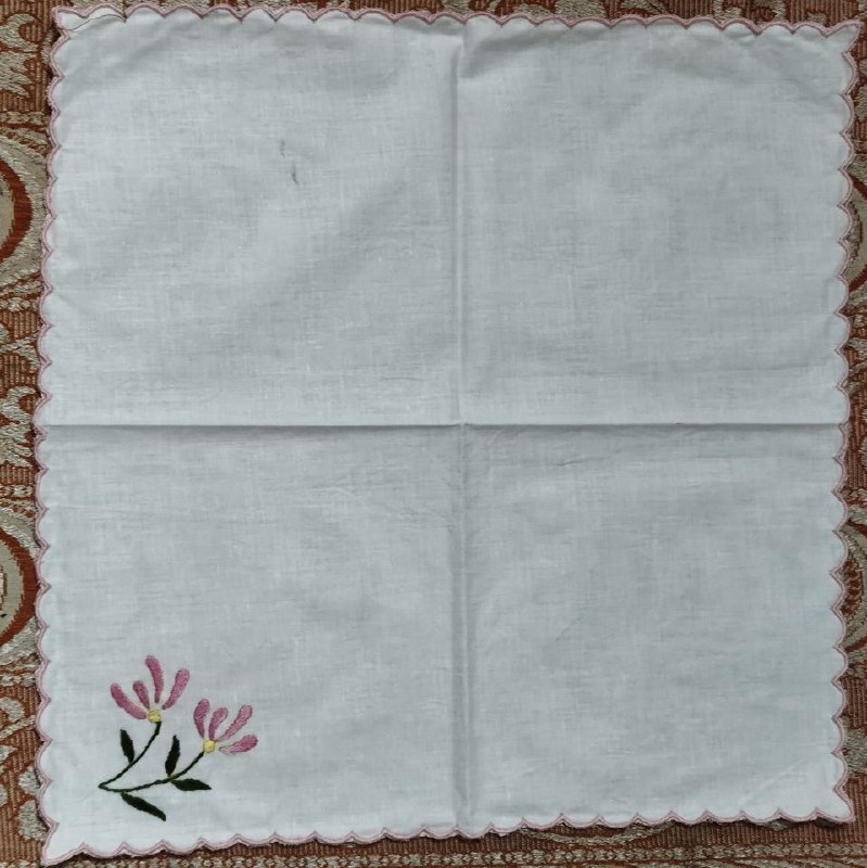 Elevate your style with this Hand Embroidery Handkerchief, meticulously crafted in Kerala. Made from soft, white cotton, it showcases a simple yet elegant embroidery design, perfect for adding a refined touch to any outfit. This eco-friendly alternative to disposable tissues is both sustainable and reusable, making it an ideal choice for those who appreciate both beauty and practicality.