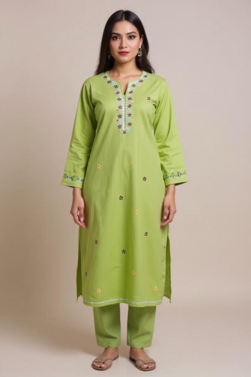 This kurti features exquisite embroidery that adds a unique, artistic flair to its design. Made from breathable cotton, it’s perfect for all-day comfort. Whether paired with leggings or jeans, it is a versatile addition to any wardrobe.