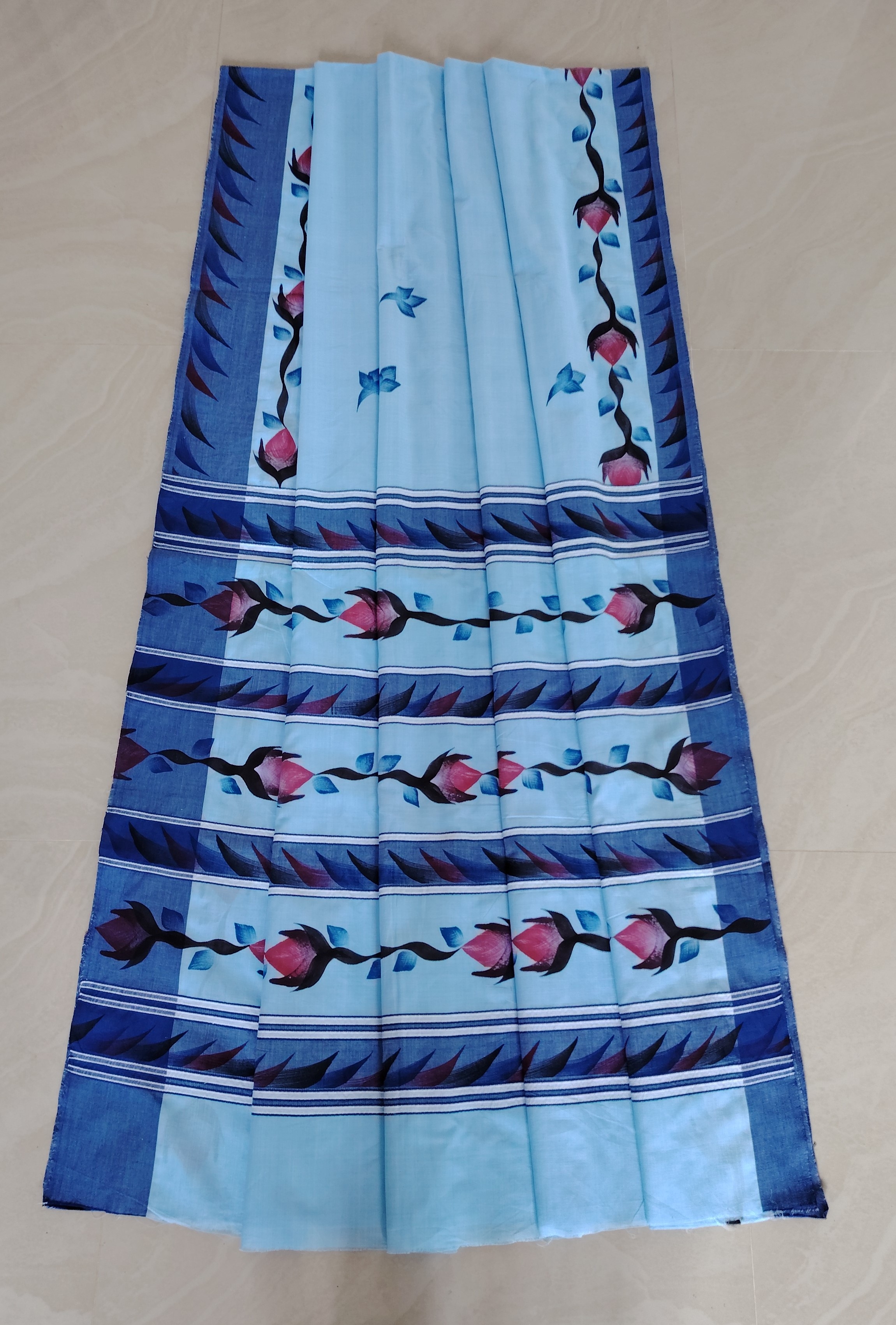 Woven with pure cotton yarns, this saree offers breathability and lightweight drape, ideal for all-day wear. The hand-painted floral patterns add a unique artistic touch, making each piece one of a kind.