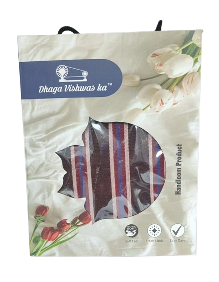 Designed with classic stripes, this stole carries the authenticity of handloom weaving. The soft, breathable cotton makes it a year-round accessory, offering both comfort and understated elegance.