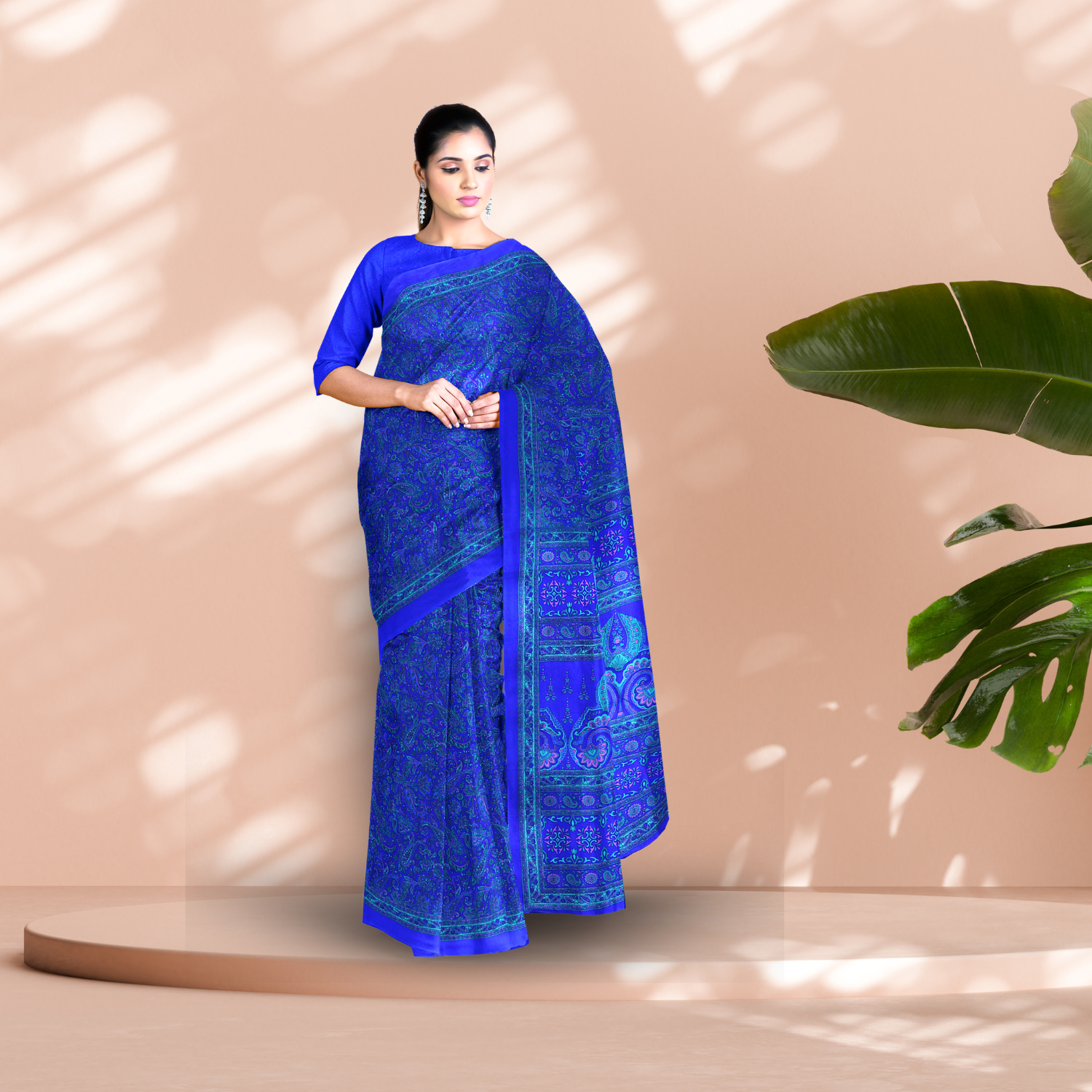 This saree comes with an unstitched blouse piece, allowing you to customize the design and fit to reflect your personal style. The vibrant blue color, combined with the smooth silk finish, exudes sophistication and traditional charm, making it a must-have in your ethnic wardrobe. Whether paired with bold statement jewelry for a grand look or subtle accessories for a minimalistic appeal, this saree is guaranteed to turn heads.