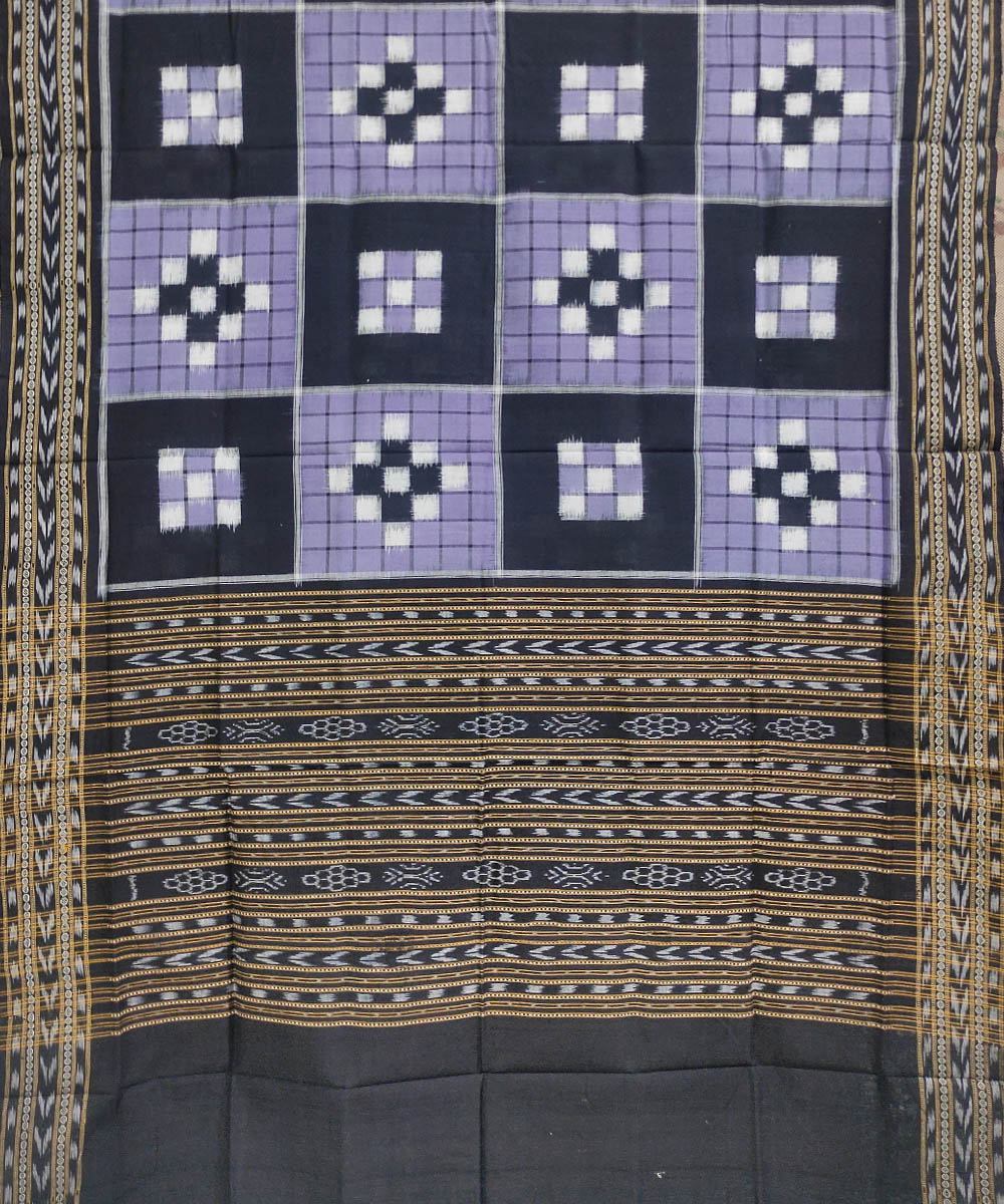 Gray Black Sambalpuri Handwoven Double Ikat Cotton Dupatta SFCDUP0794