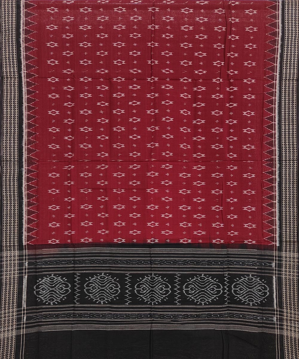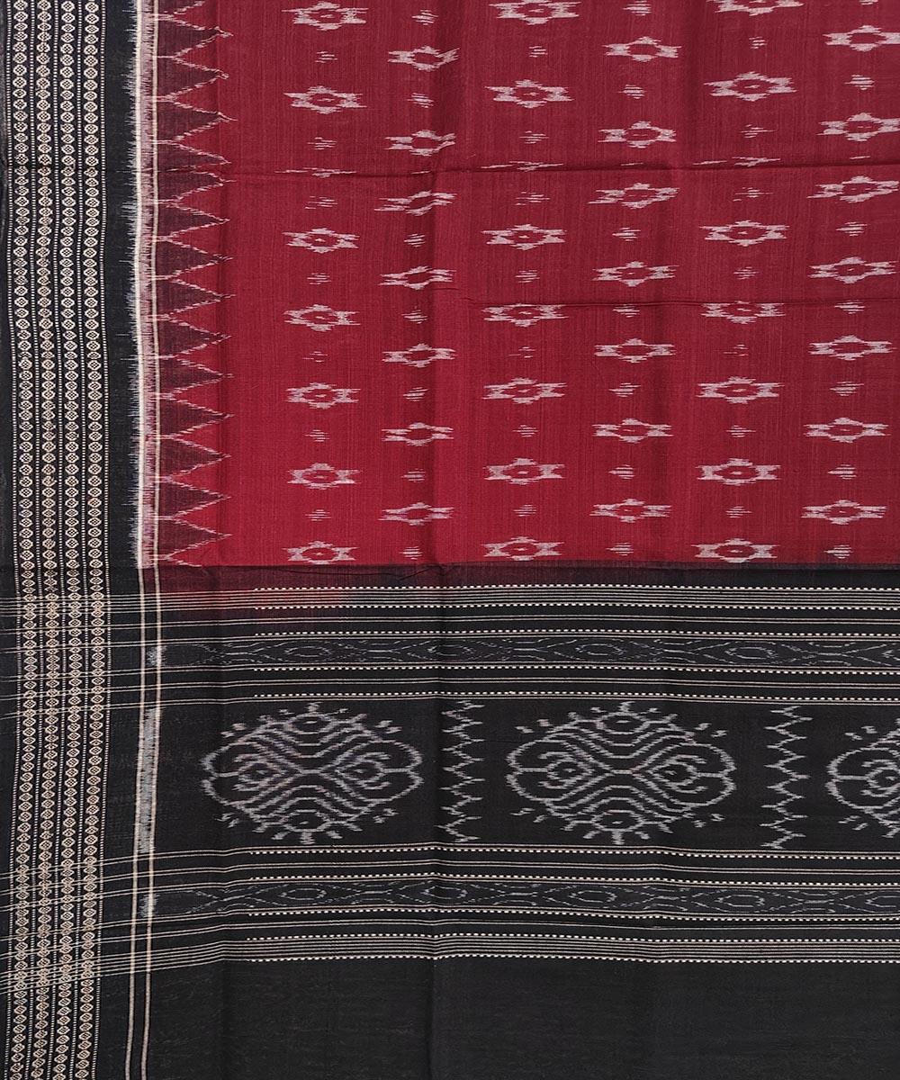Maroon Black Sambalpuri Handwoven Single Ikat Cotton Dupatta SFCDUP1443