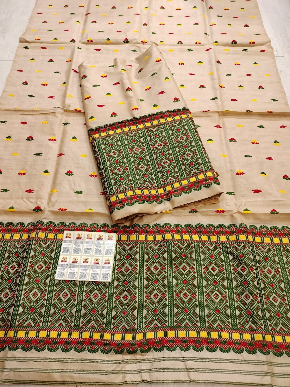 The Mekhla Chadar in pure Tussar silk is a luxurious handloom product that blends elegance with tradition. Crafted from high-quality Tussar silk, it offers a soft, smooth texture and natural sheen. Featuring intricate handwoven patterns, it is lightweight, breathable, and perfect for special occasions. This timeless piece reflects cultural heritage while providing comfort and sophistication.