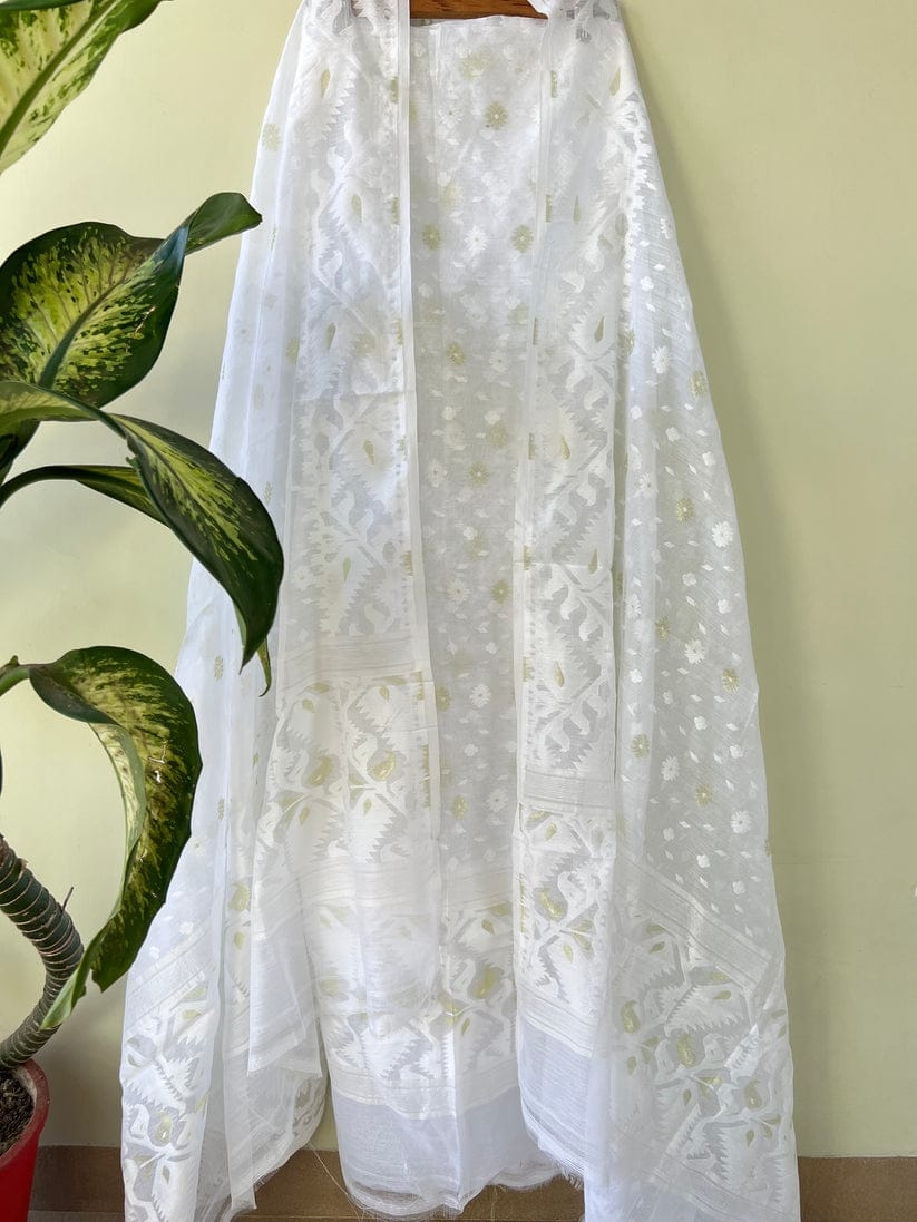 Handloom Unstitched Cotton Suit with Dupatta | White