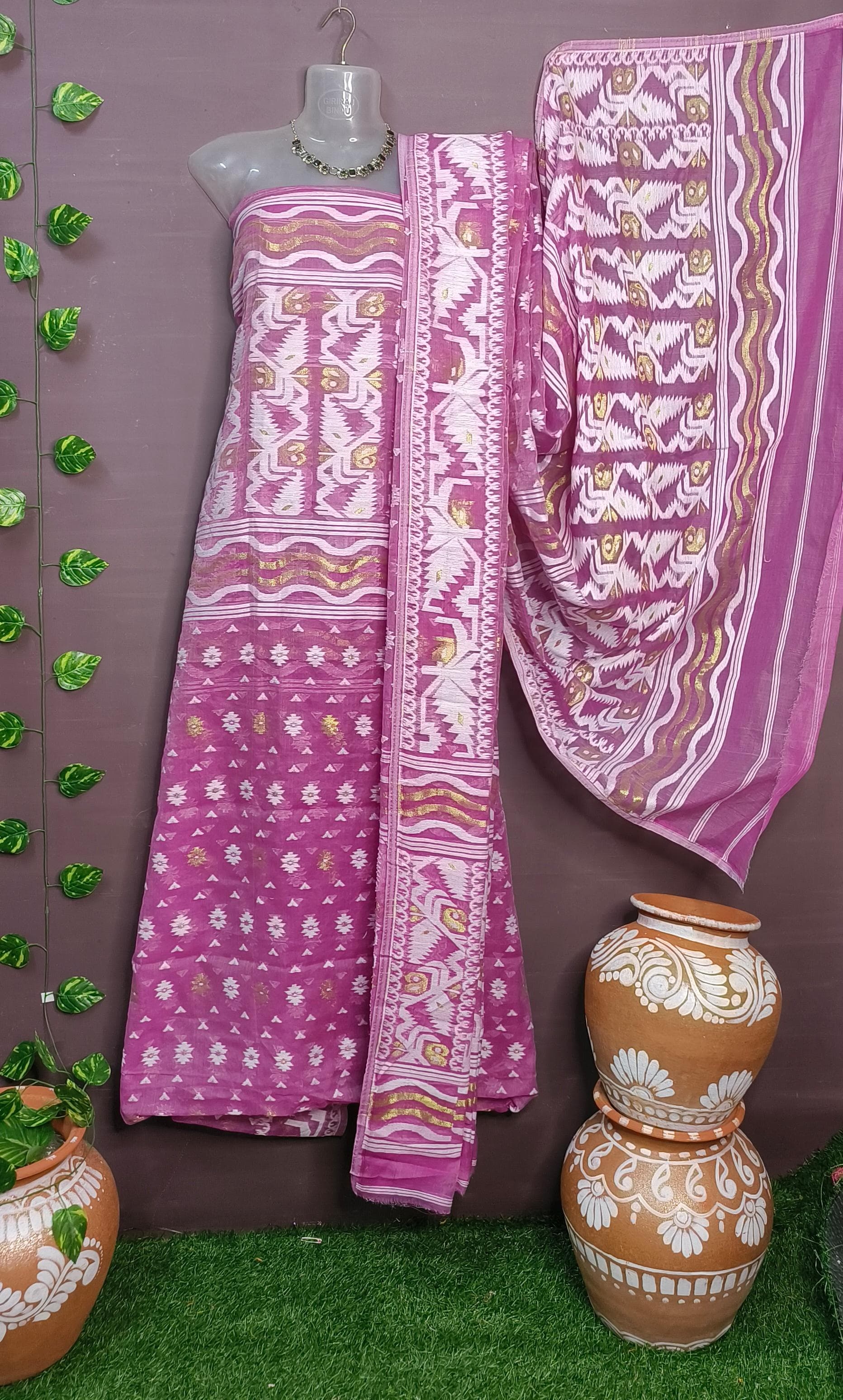 Handloom Unstitched Cotton Suit with Dupatta | Orchid Pink