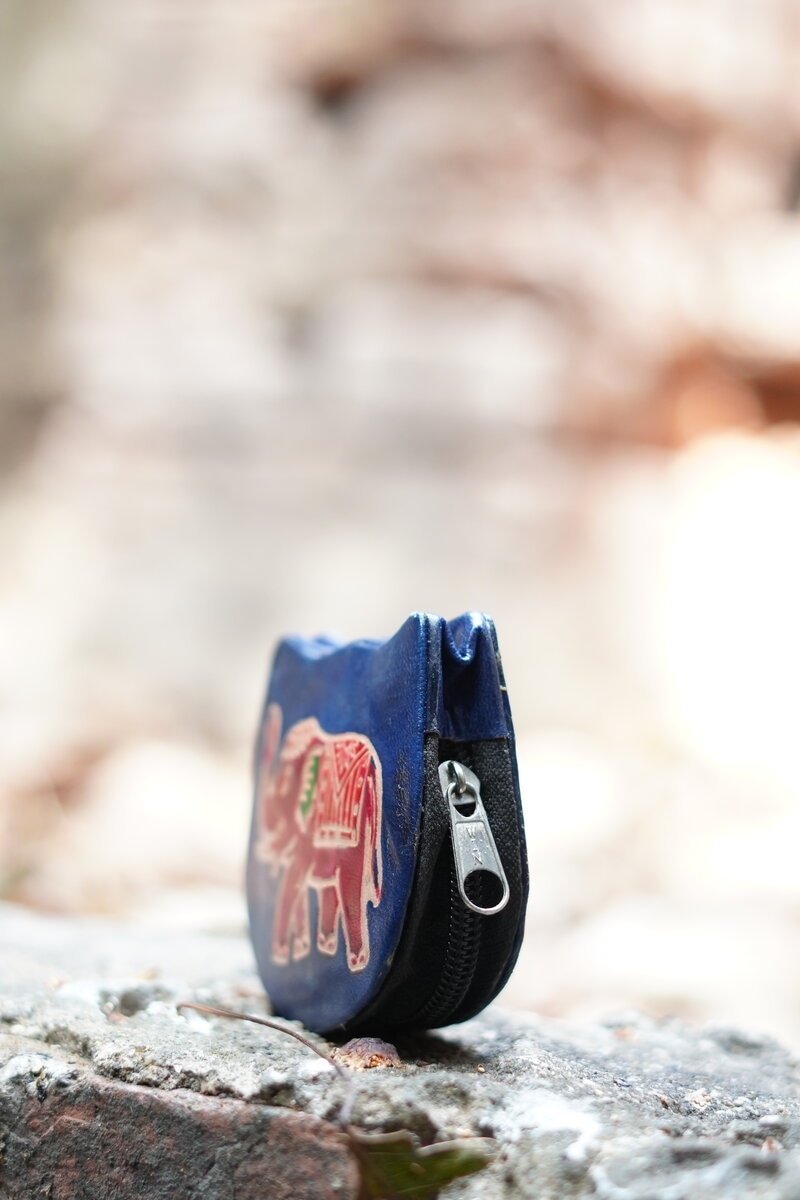 Genuine leather Small Coin Purse | Elephant Design | Blue