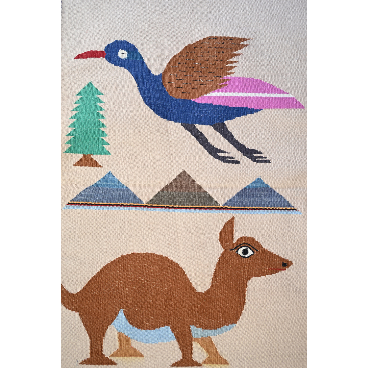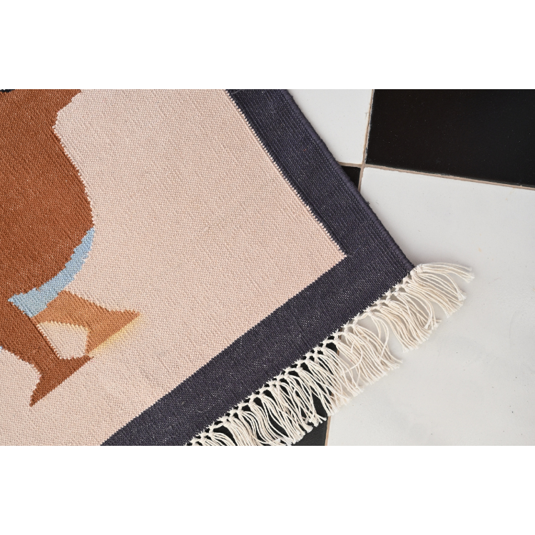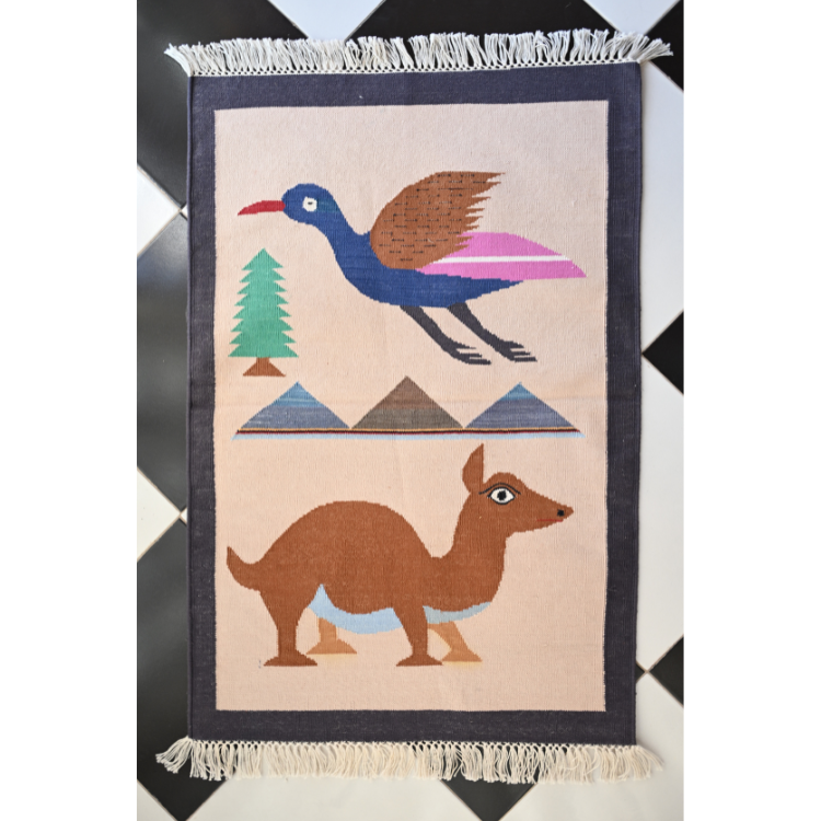 This handwoven 2×3 ft cotton rug features an elegant swan motif amidst soft desert hues of pink, beige, and blue. Woven on a traditional Salawas Panja loom by skilled Rajasthani artisans, this lightweight yet durable dhurrie blends centuries‑old craftsmanship with modern versatility—use it as a floor accent, wall hanging, framed textile art, or table cover. Made from 100% eco‑friendly, chemical‑free cotton, each piece is unique. Easy to care for—vacuum, spot‑clean, or hand‑wash gently, and avoid prolonged sunlight. Perfect for bohemian, Indian, and eclectic interiors or thoughtful gifting, this Swan Desert Rug adds warmth, elegance, and heritage to any space.