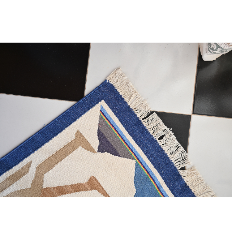 This handwoven 2×3 ft cotton dhurrie depicts a majestic camel amid desert flora in calming white, green, and blue hues. Crafted on a traditional Salawas Panja loom by skilled Rajasthani artisans, it blends lightweight durability with eco‑friendly natural fibers and timeless elegance. Versatile as a floor rug, wall hanging, framed art, or meditation mat, it celebrates India’s rich textile heritage. Care is simple: vacuum, spot‑clean, or gentle hand wash, avoiding prolonged sun exposure. Perfect for living rooms, meditation corners, bohemian or modern interiors, and thoughtful gifting.