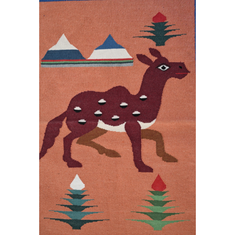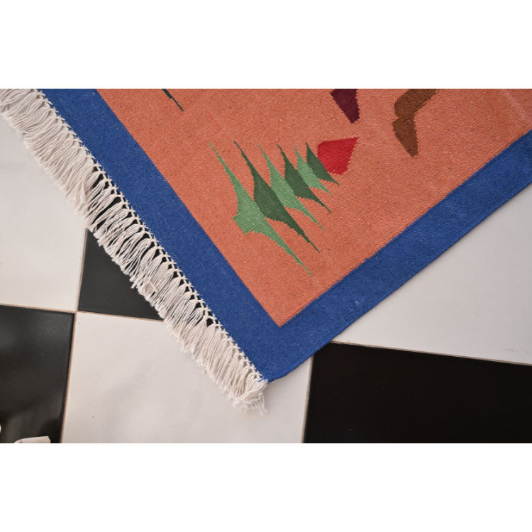 This handwoven 2×3 ft cotton dhurrie features a serene deer amid desert flora in earthy brown and blue hues, crafted on a traditional Salawas Panja loom by skilled Rajasthani artisans. Eco‑friendly, chemical‑free, and lightweight yet durable, it’s perfect as a floor rug, wall hanging, framed art, or meditation mat. Care is simple: vacuum regularly, spot‑clean or gently hand‑wash, and avoid prolonged sunlight. Ideal for boho‑chic, rustic, or eclectic interiors, this rug brings warmth, heritage, and timeless elegance to any space.