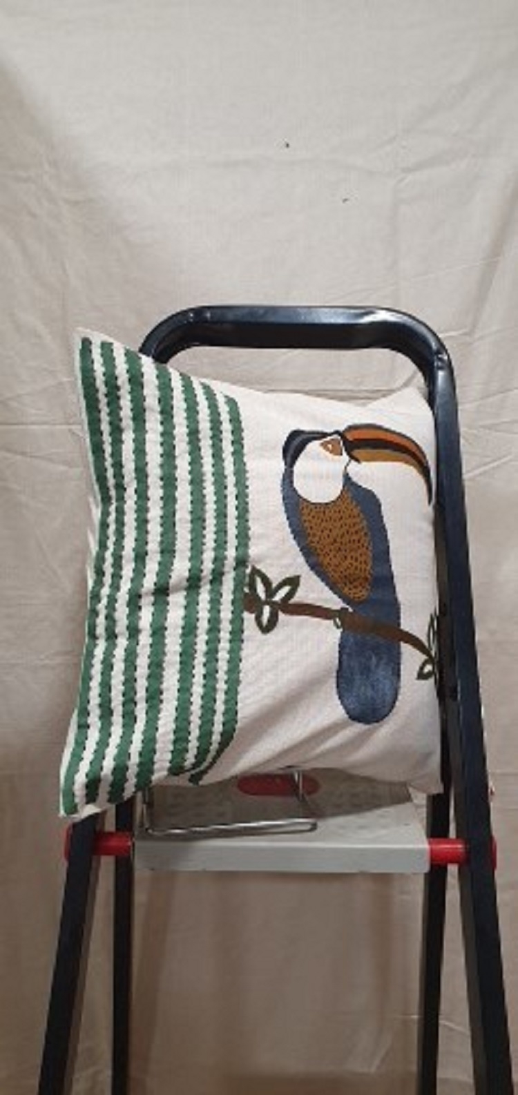 Elevate your home decor with this exquisite handmade cushion cover, crafted by skilled Indian artisans. Featuring a vibrant and artistic bird design with delicate leaf patterns, this cushion cover adds charm and a natural touch to any living space. Made with high-quality fabric and traditional techniques, it reflects the rich cultural heritage of India. Perfect for sofas, beds, or accent chairs, this cushion cover blends comfort, style, and sustainability.