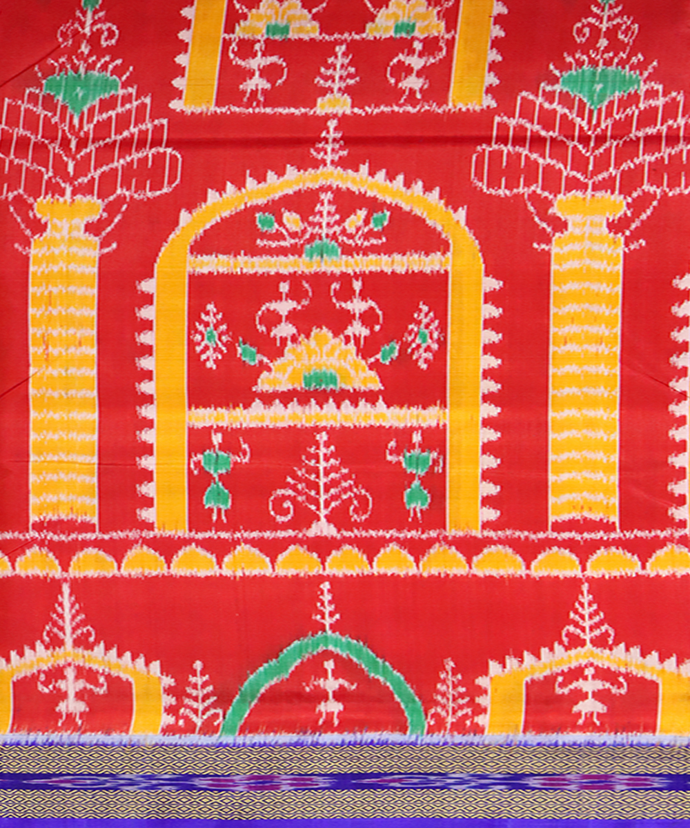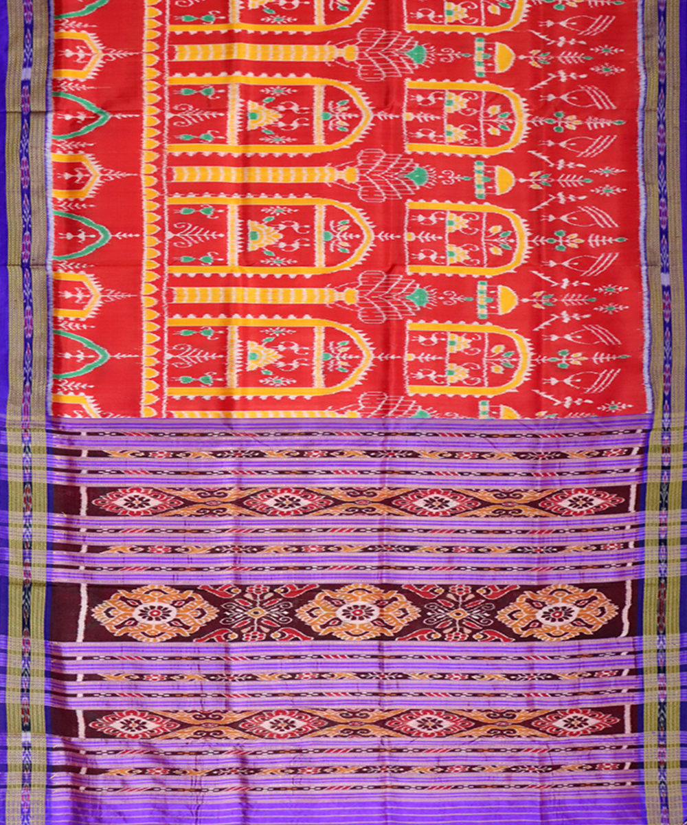 Handwoven traditional Khandua silk saree Dark Red base Ikat in body & border dark blue base with Traditional ikat & Pallu dark blue base with traditional ikat