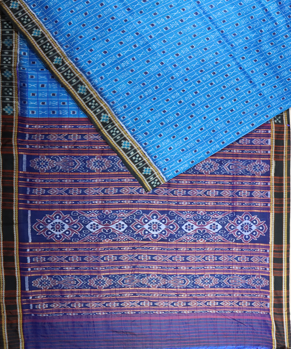Handwoven traditional Khandua silk saree dark blue base Ikat in body & border black base with traditional ikat & Pallu black base with traditional ikat