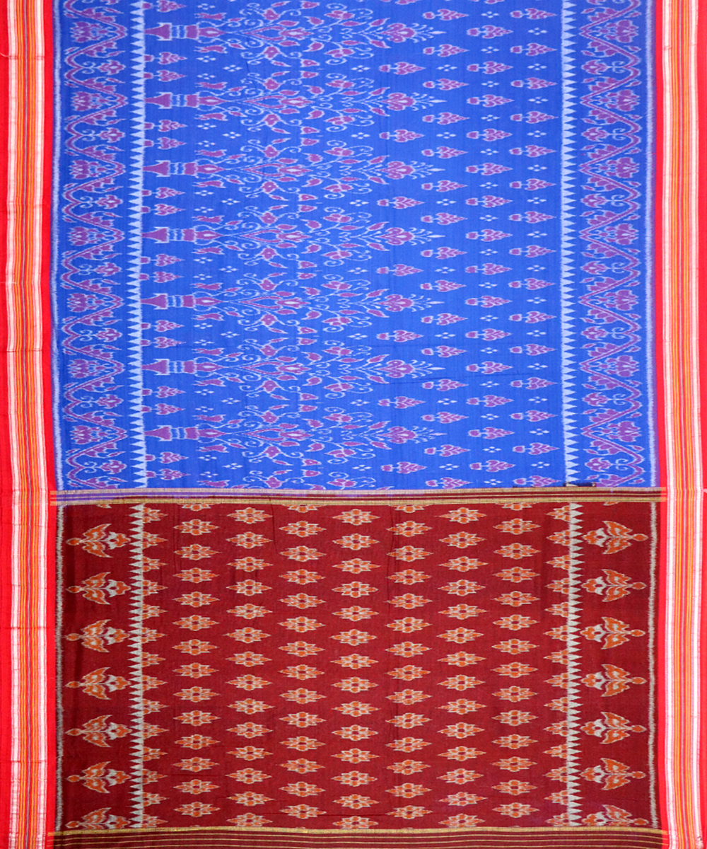 Exclusive Handwoven nuapatna cotton saree dark blue base with Traditional ikat in body & border black base with pasapali ikat & dobby & Pallu black base with traditional ikat ,Saree has Blouse piece.