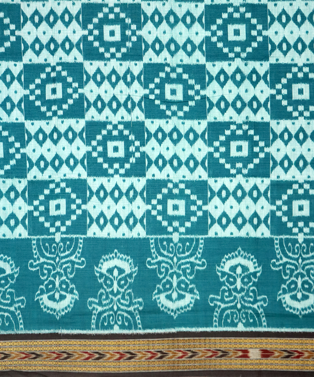 Exclusive Handwoven nuapatna cotton saree celadon blue base with Traditional ikat in body & border black base with traditional ikat & dobby & Pallu black base with traditional ikat ,Saree has Blouse piece.