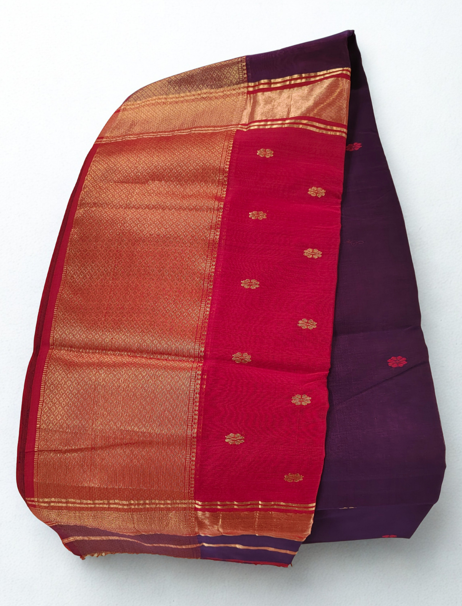 Handwoven Maheshwari saree in purple and red