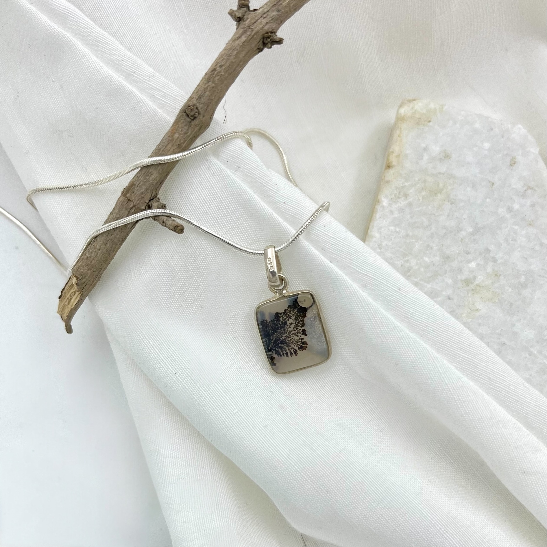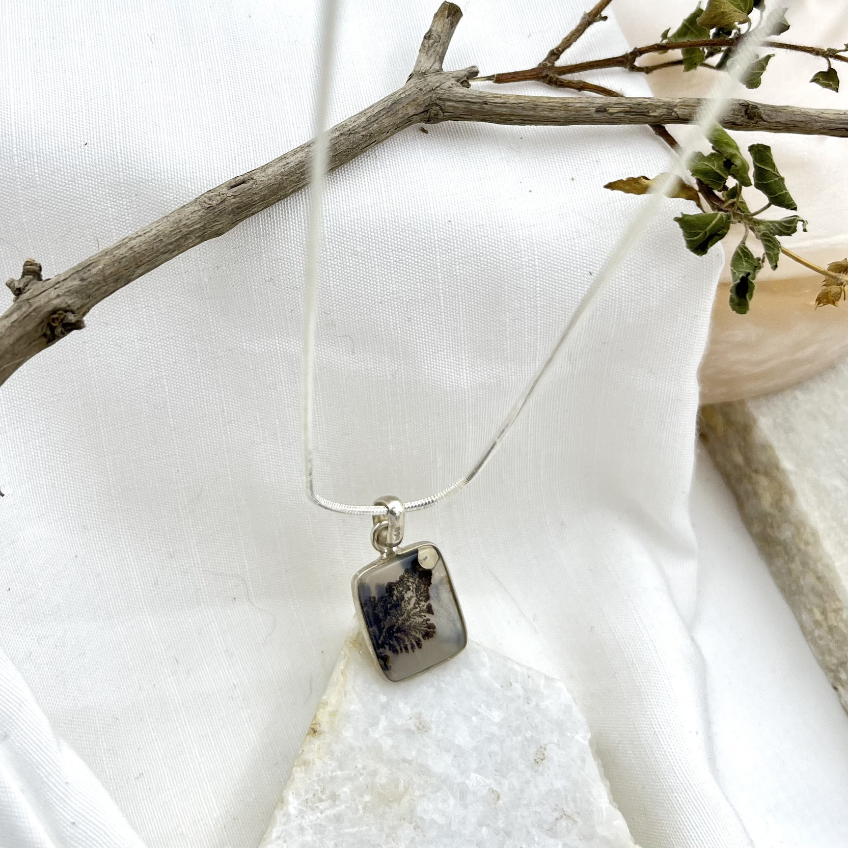 | Material | Shazar (Dendritic Agate), 925 Silver |