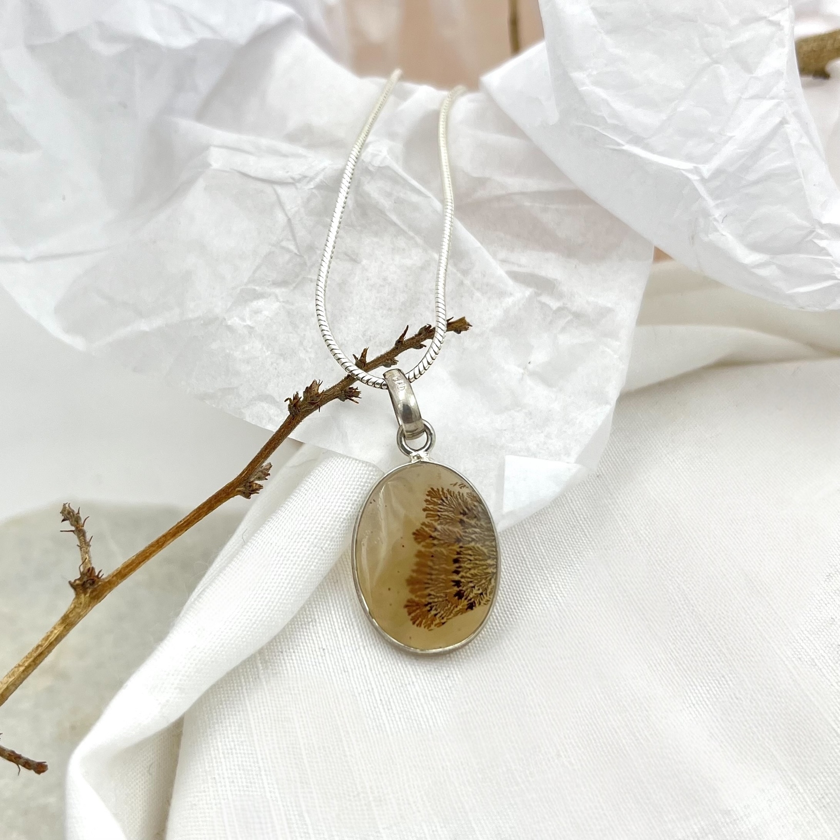 | Material | Shazar (Dendritic Agate), 925 Silver |