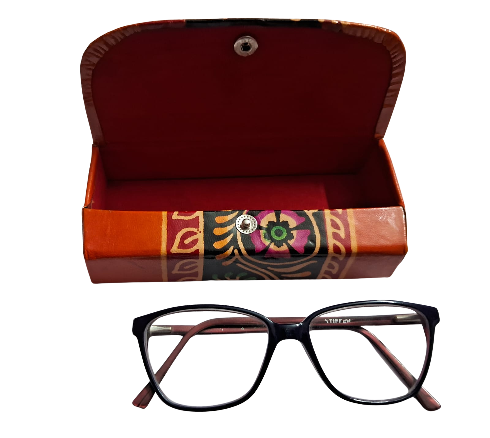 Originating from Shantiniketan in West Bengal, this leather spectacle case draws inspiration from age-old Bengali aesthetics. The vibrant, multi-coloured traditional designs on both sides make it stand out effortlessly. Unlike mass-produced plastic alternatives, this handicraft item is made from genuine leather, giving it a natural texture and long-lasting durability.