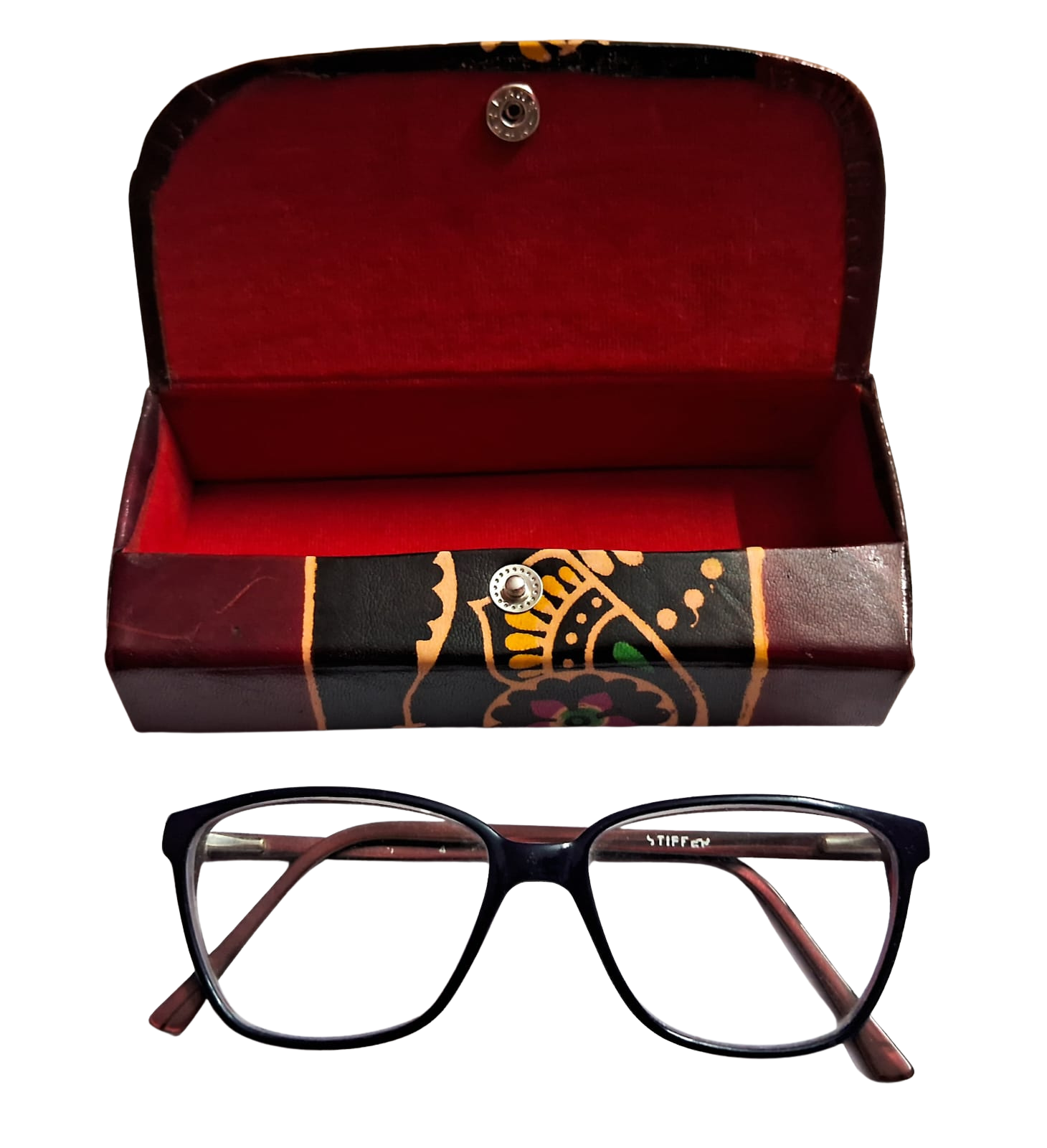 Originating from Shantiniketan in West Bengal, this leather spectacle case draws inspiration from age-old Bengali aesthetics. The vibrant, multi-coloured traditional designs on both sides make it stand out effortlessly. Unlike mass-produced plastic alternatives, this handicraft item is made from genuine leather, giving it a natural texture and long-lasting durability.