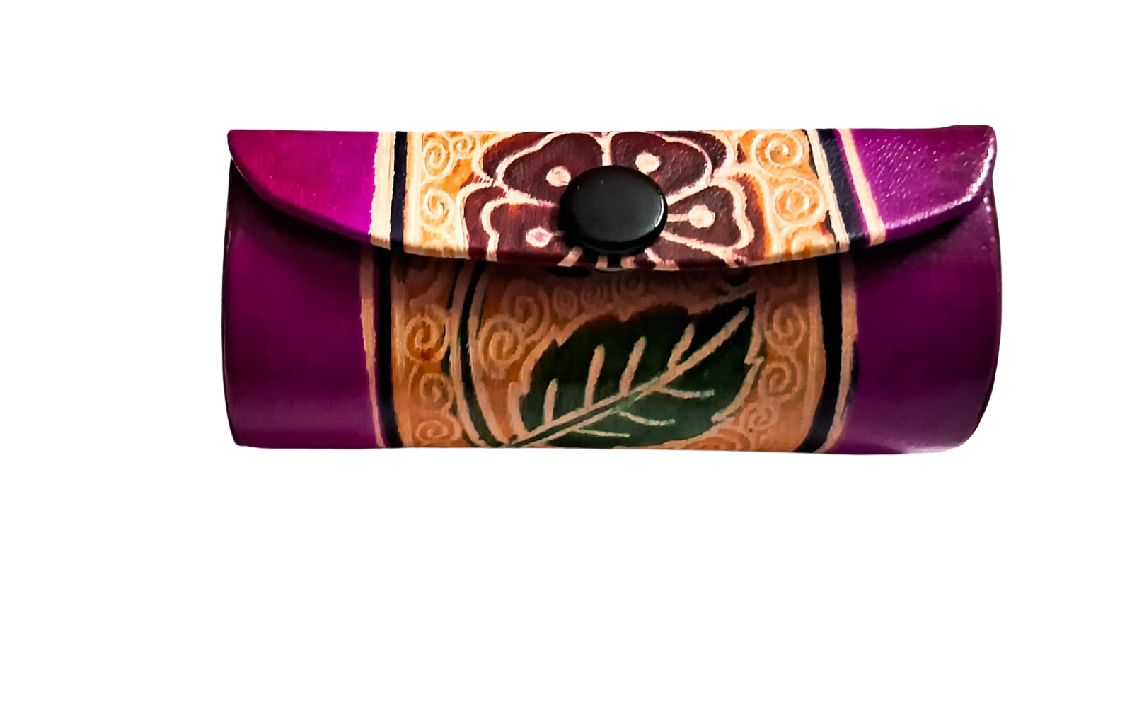 This case is made from handpicked, high-quality leather, known for its durability and soft texture. It’s then brought to life with delicate hand-painted motifs inspired by India’s cultural designs, making each piece beautifully distinct. The compact mirror inside adds a practical touch for on-the-go elegance, making it a fusion of convenience and charm.