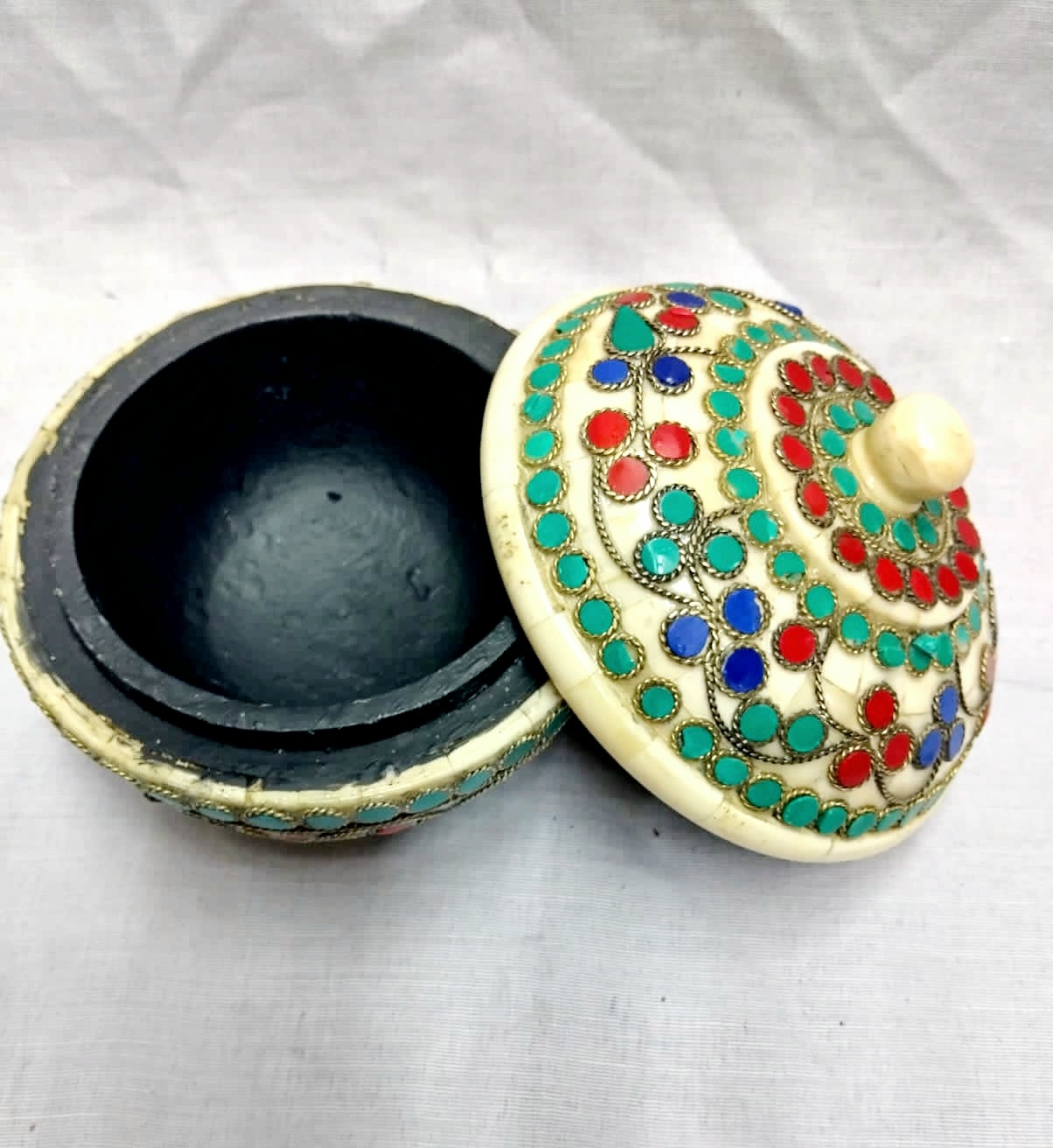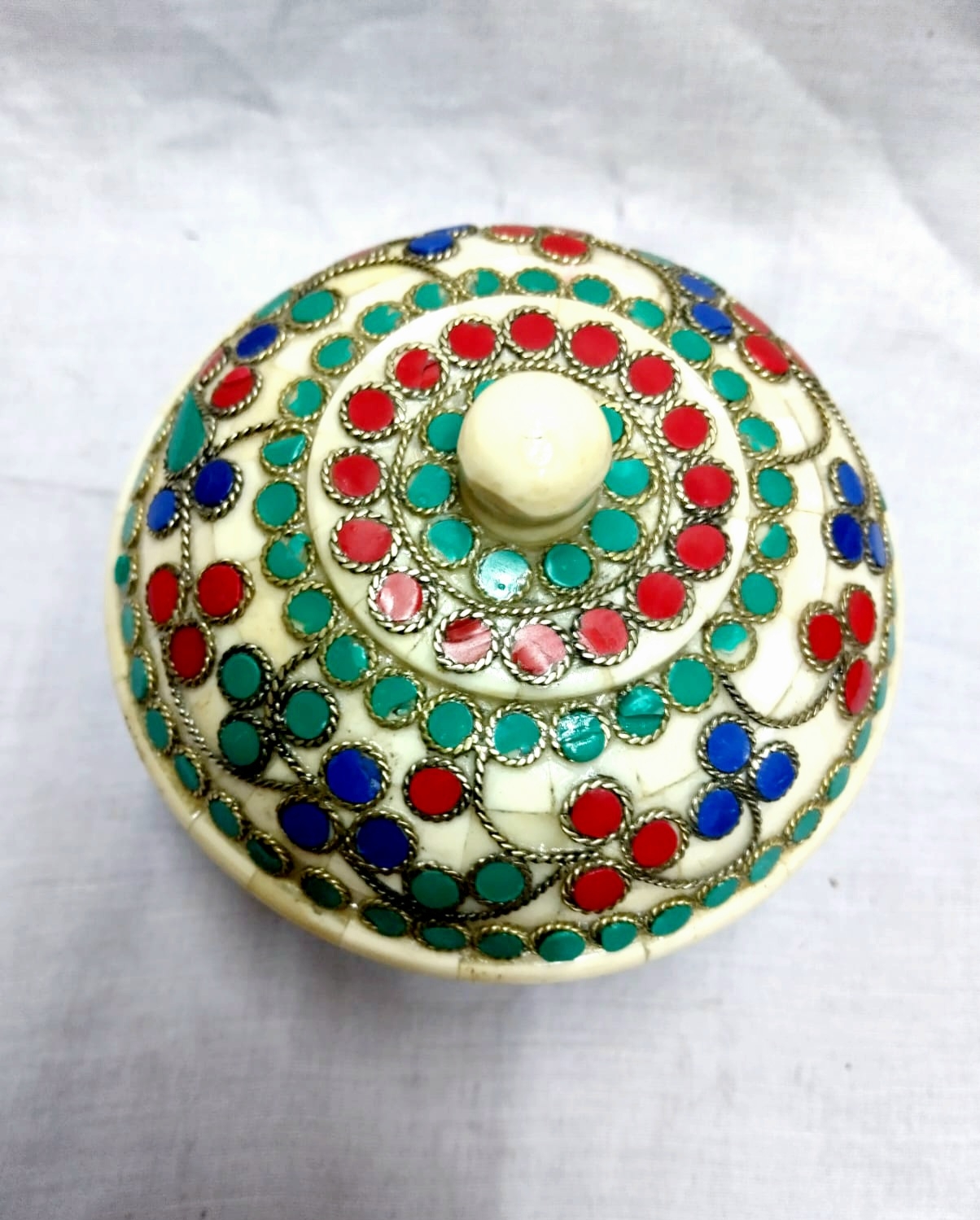 We are here to present a very unique design jewellry box orr handicrafted box made with wooden base bone fitted and also Minakari Work on it look so nice on it .
