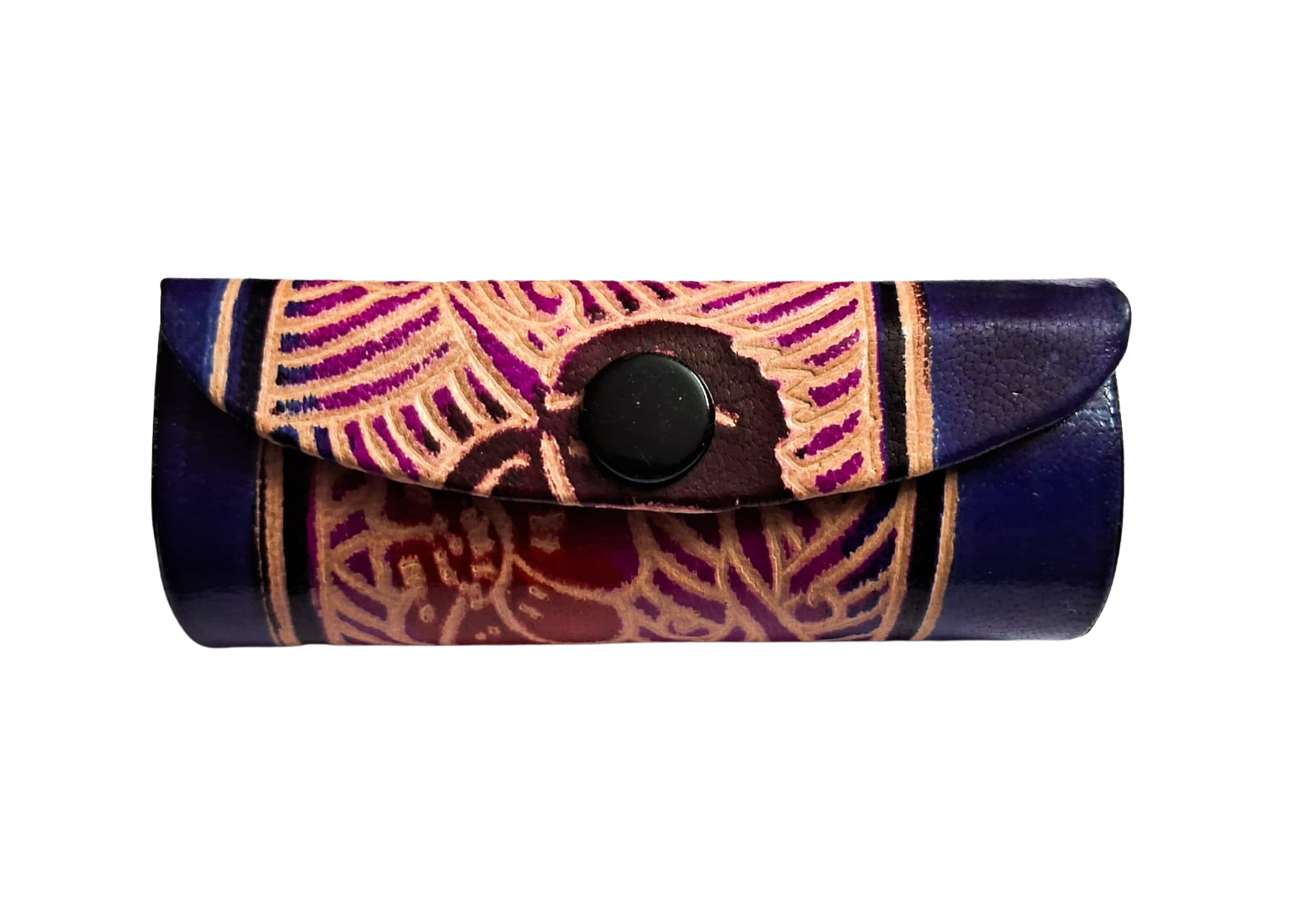 This case is made from handpicked, high-quality leather, known for its durability and soft texture. It’s then brought to life with delicate hand-painted motifs inspired by India’s cultural designs, making each piece beautifully distinct. The compact mirror inside adds a practical touch for on-the-go elegance, making it a fusion of convenience and charm.