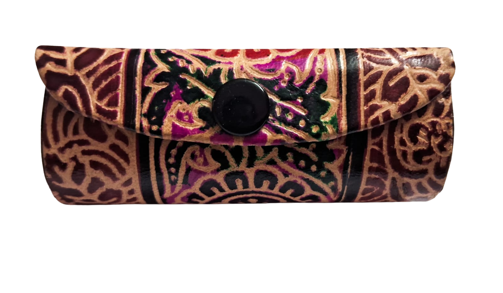 This case is made from handpicked, high-quality leather, known for its durability and soft texture. It’s then brought to life with delicate hand-painted motifs inspired by India’s cultural designs, making each piece beautifully distinct. The compact mirror inside adds a practical touch for on-the-go elegance, making it a fusion of convenience and charm.